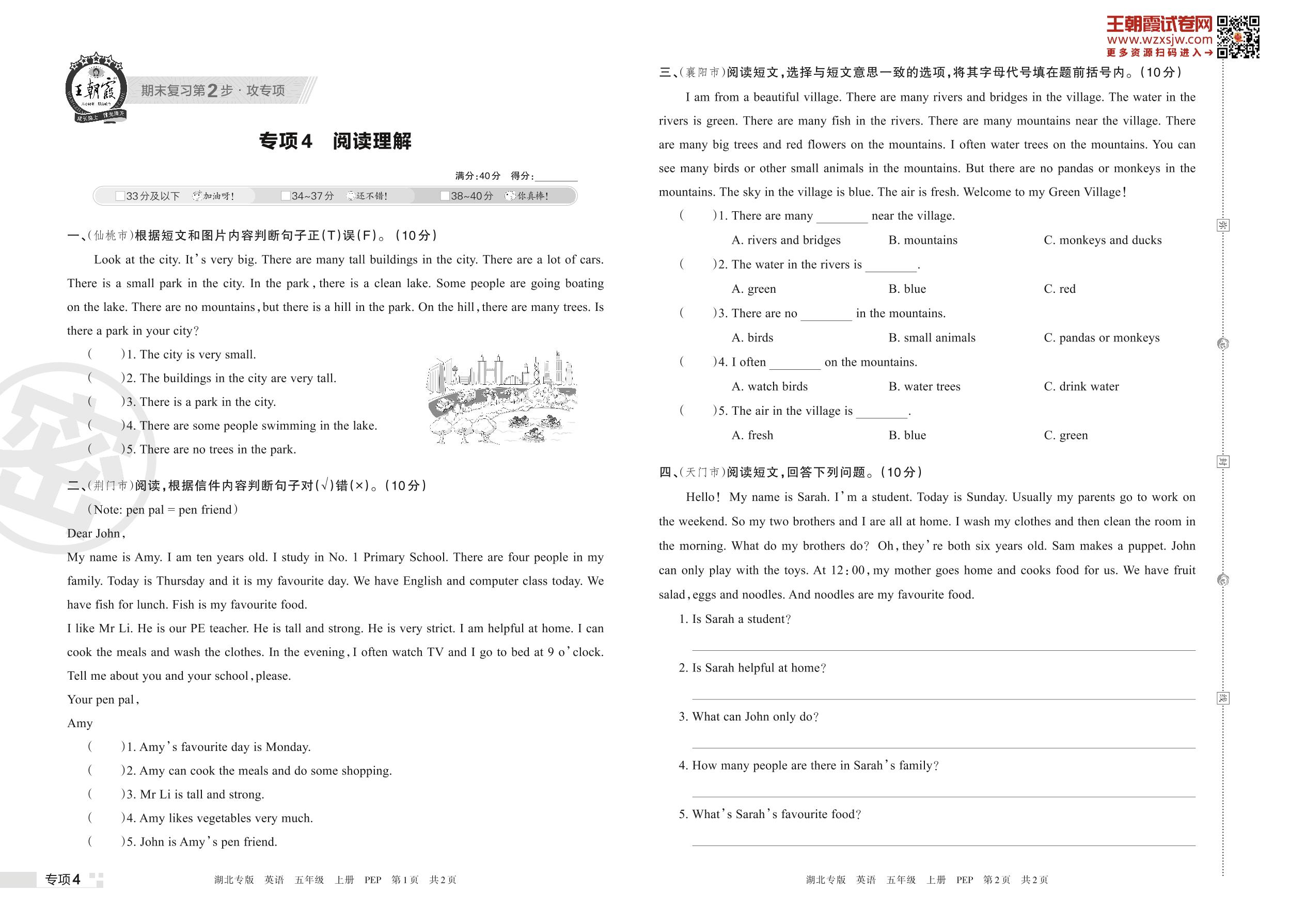 王朝霞期末专项卷——阅读理解五年级上册英语(PEP版)_R221125181329584【4】