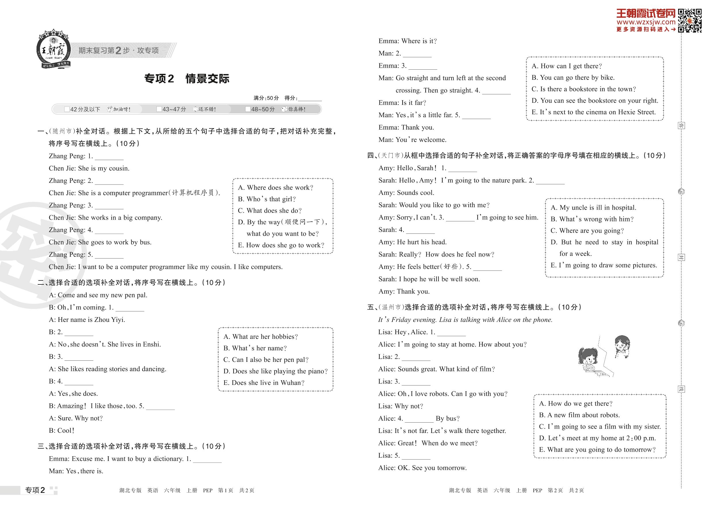 王朝霞期末专项卷——情景交际六年级上册英语(PEP版)_R221125183650468【2】