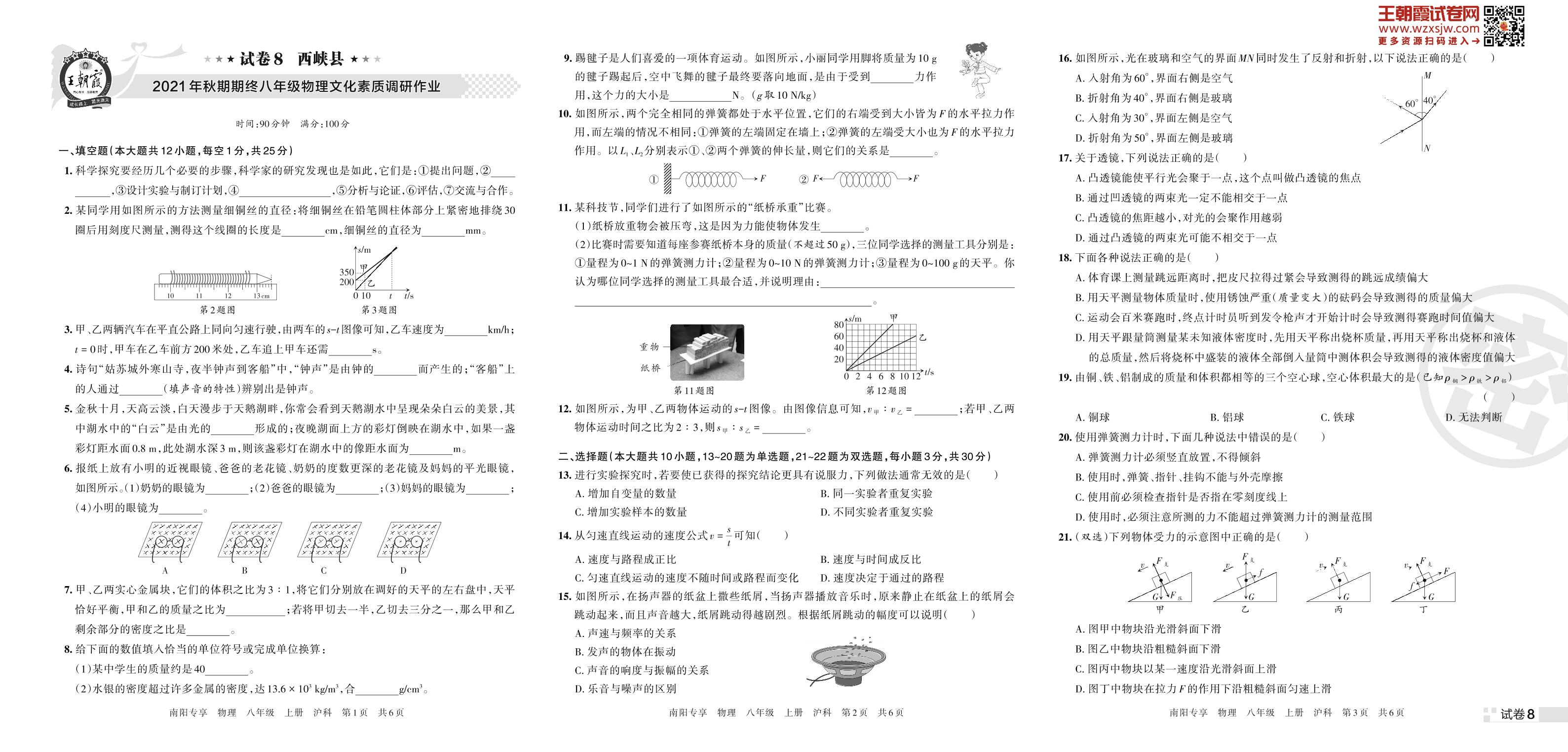 西峡县2021年秋期期终八年级物理文化素质调研作业(沪科版)【8】