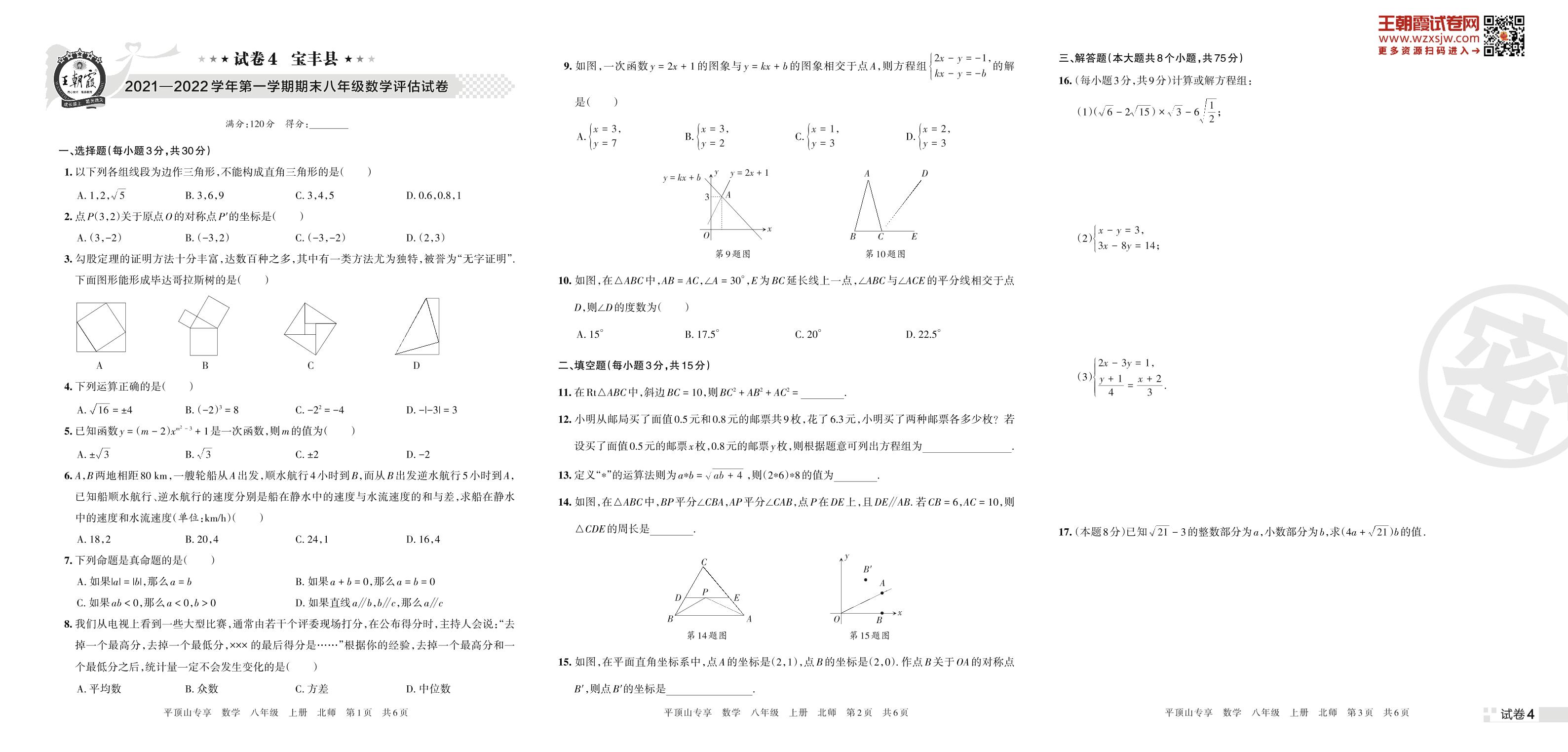 宝丰县2021—2022学年第一学期期末八年级数学评估试卷(北师版)【4】