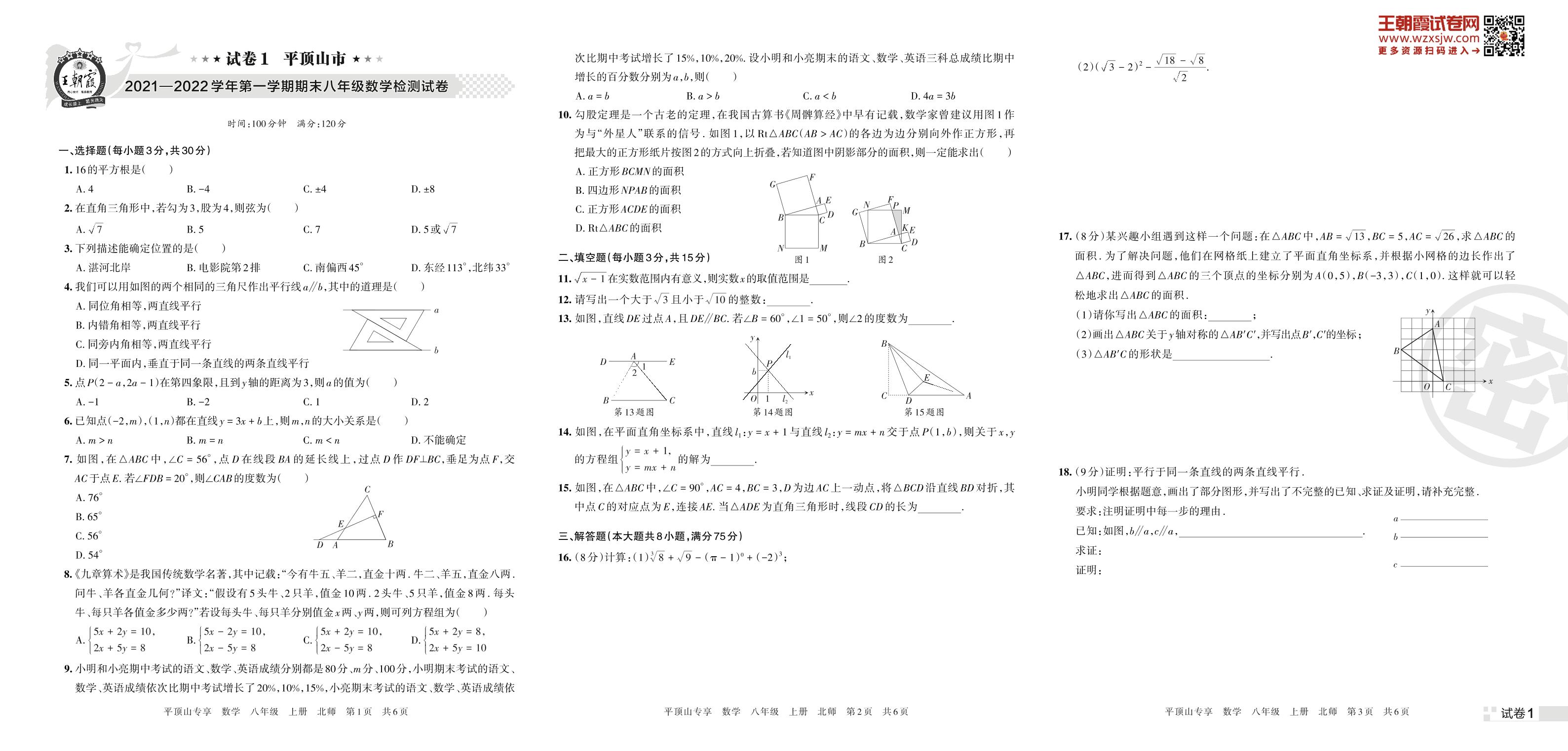 八年级数学北师版上册期末卷