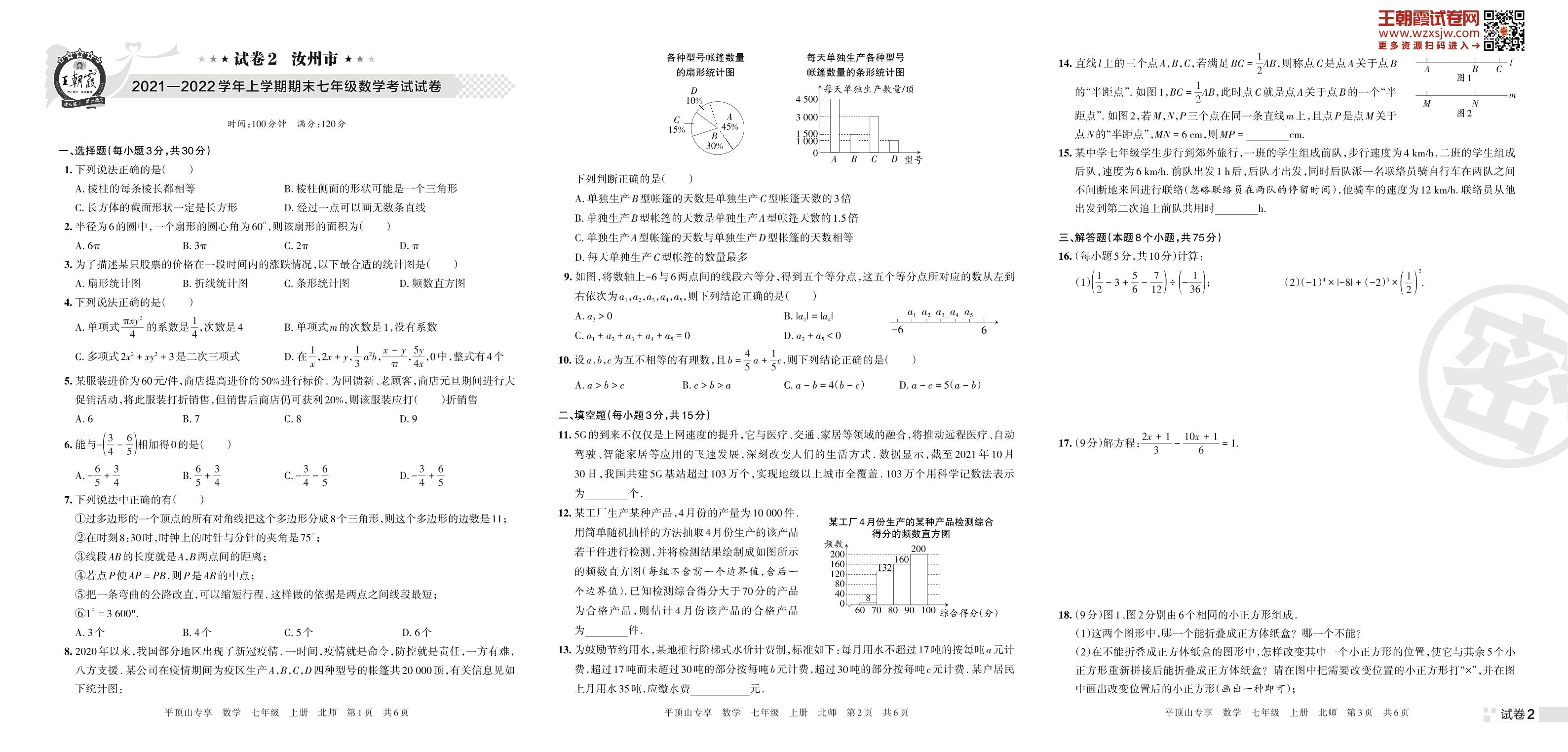 汝州市2021—2022学年上学期期末七年级数学考试试卷(北师版)【2】