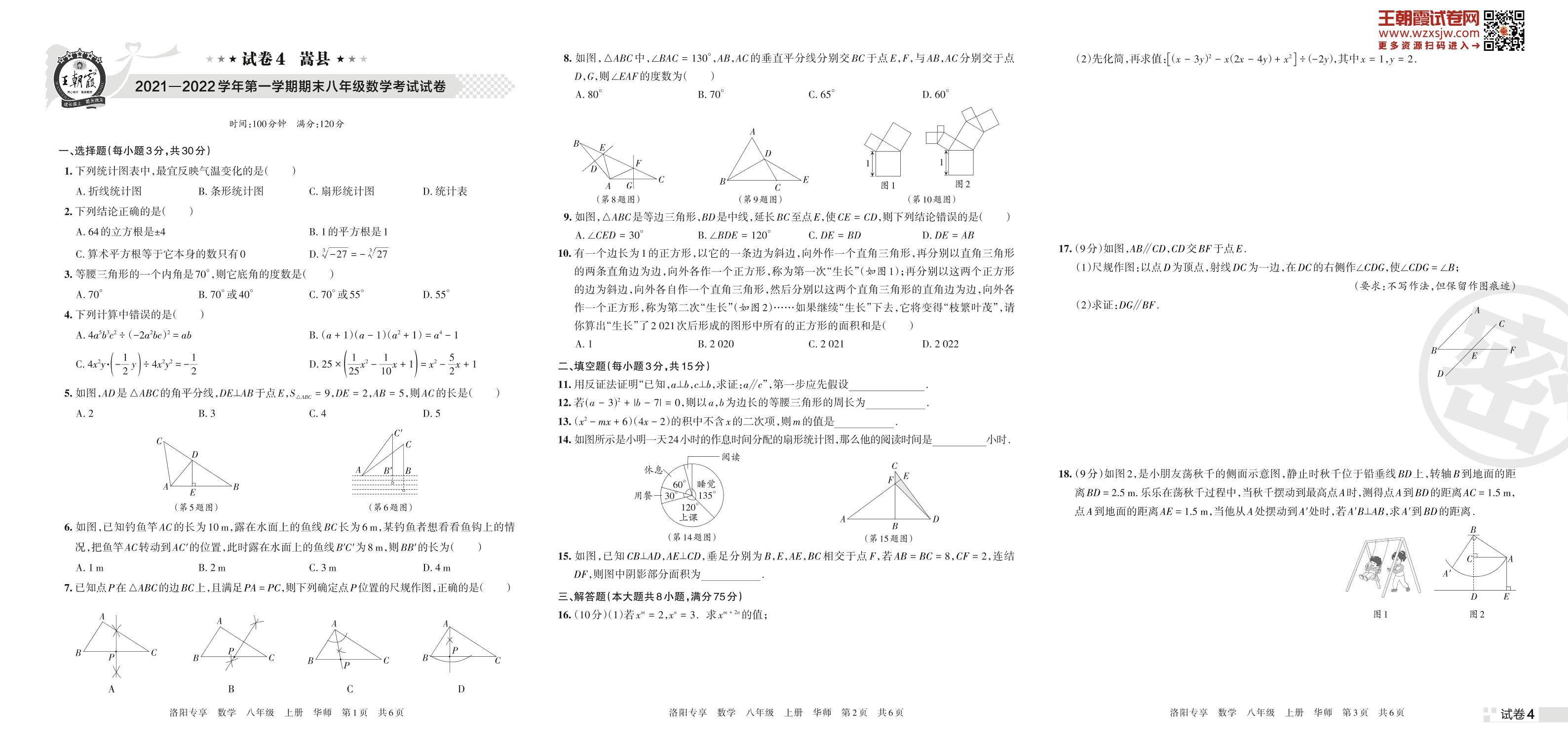 嵩县2021—2022学年第一学期期末八年级数学考试试卷(华师版)【4】