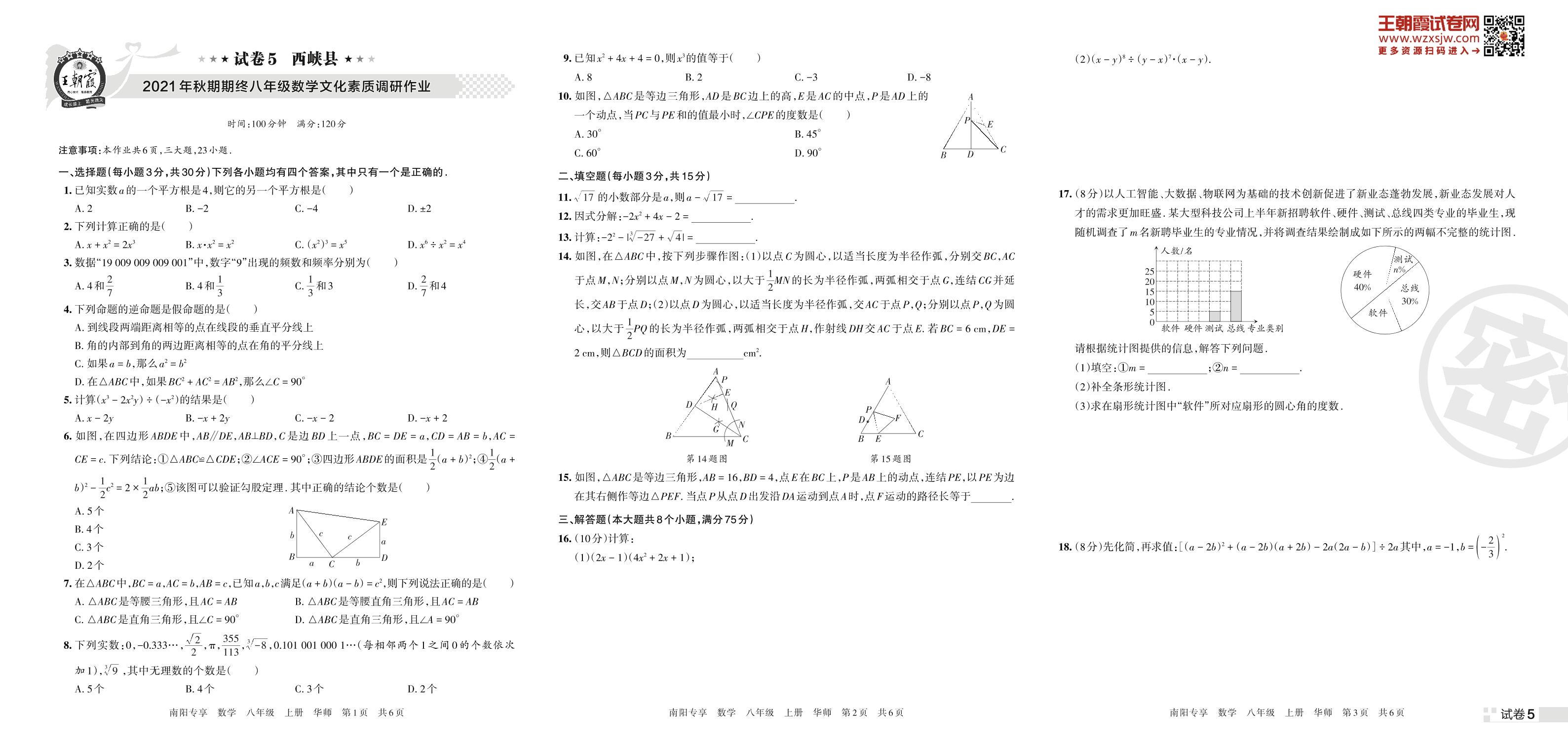 西峡县2021年秋期期终八年级数学文化素质调研作业(华师版)【5】