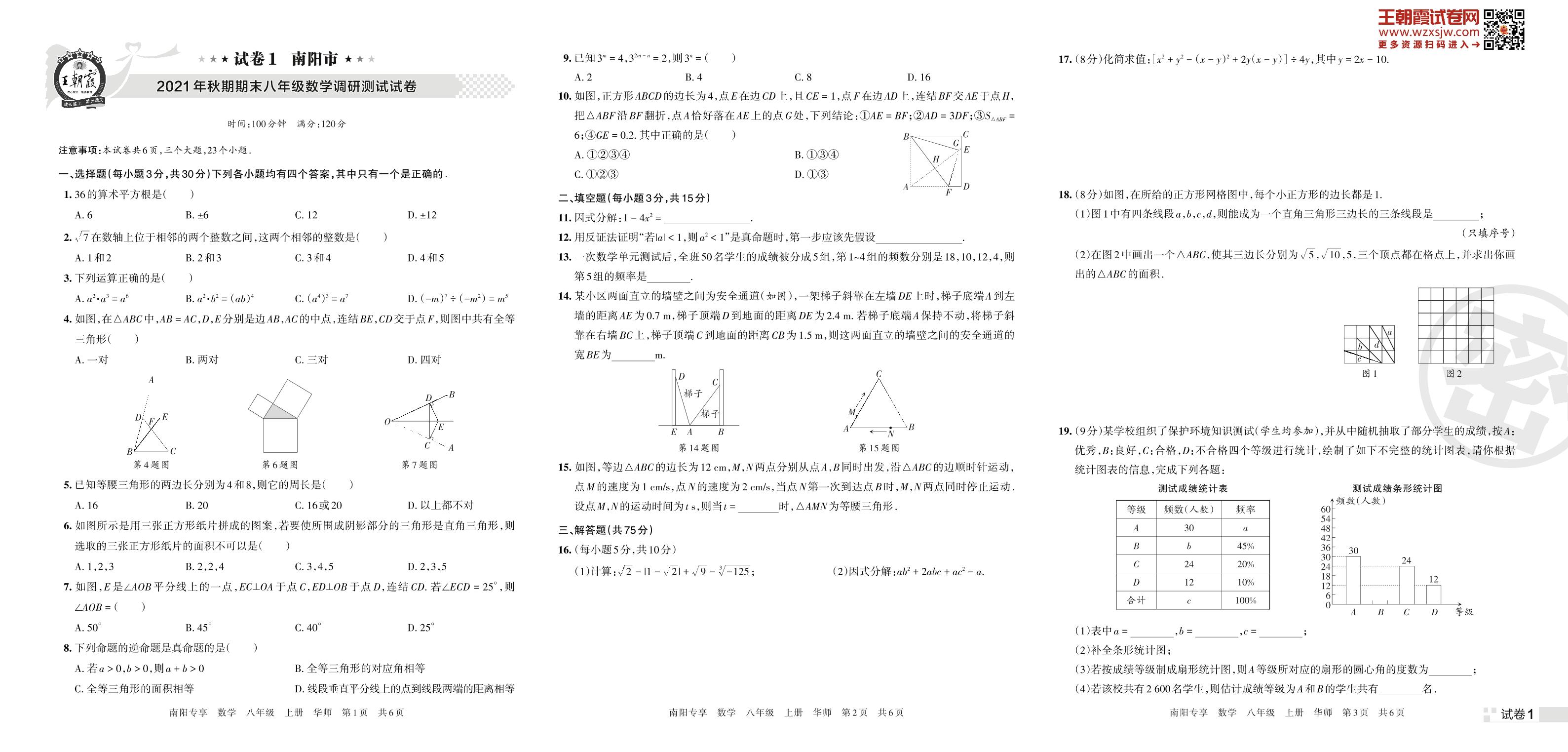 南阳市2021年秋期期末八年级数学调研测试试卷(华师版)【1】