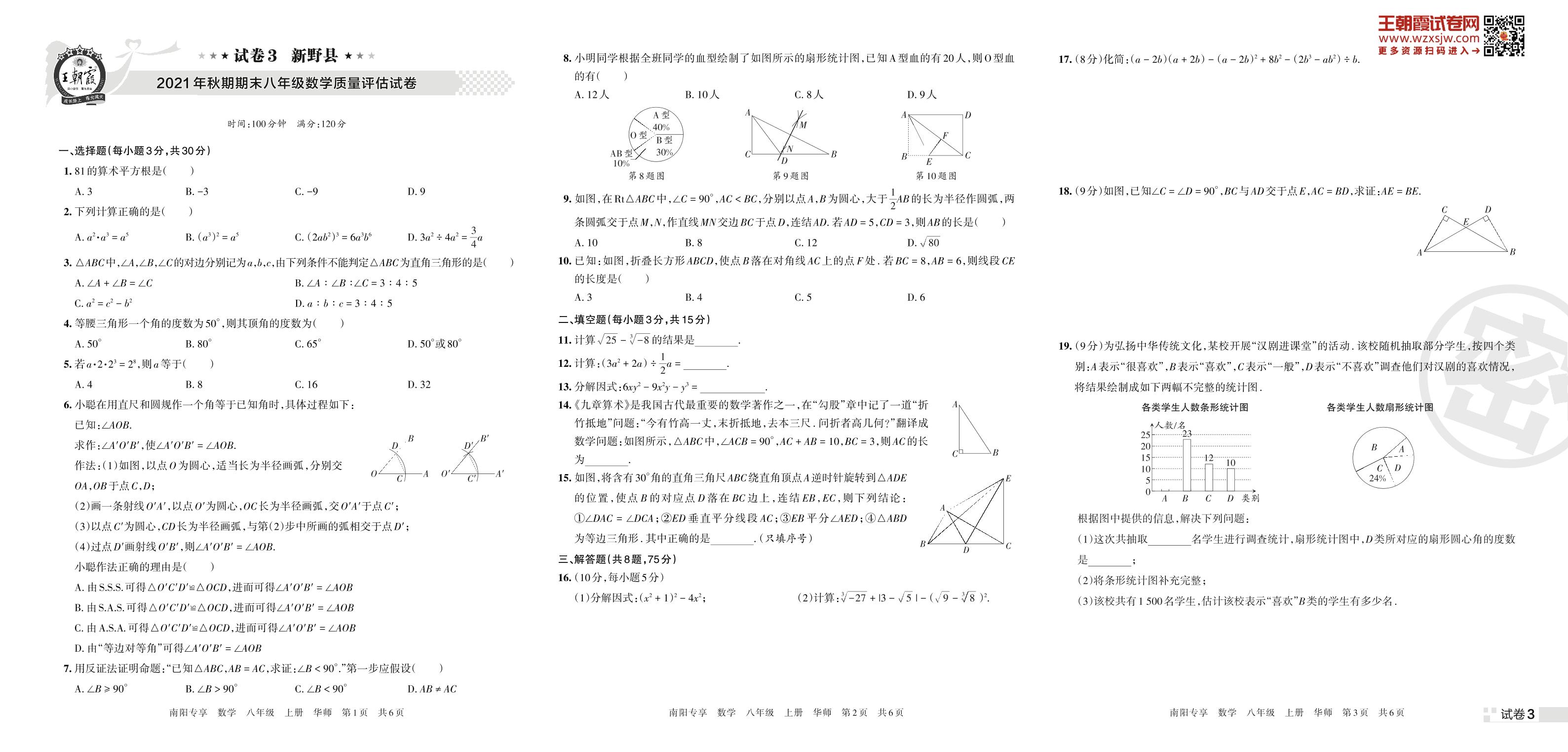 新野县2021年秋期期末八年级数学质量评估试卷(华师版)【3】