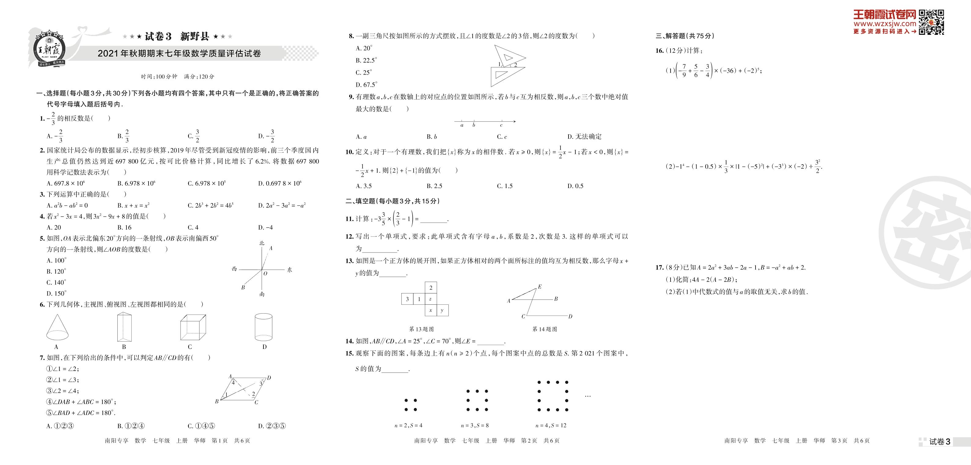 新野县2021年秋期期末七年级数学质量评估试卷(华师版)【3】