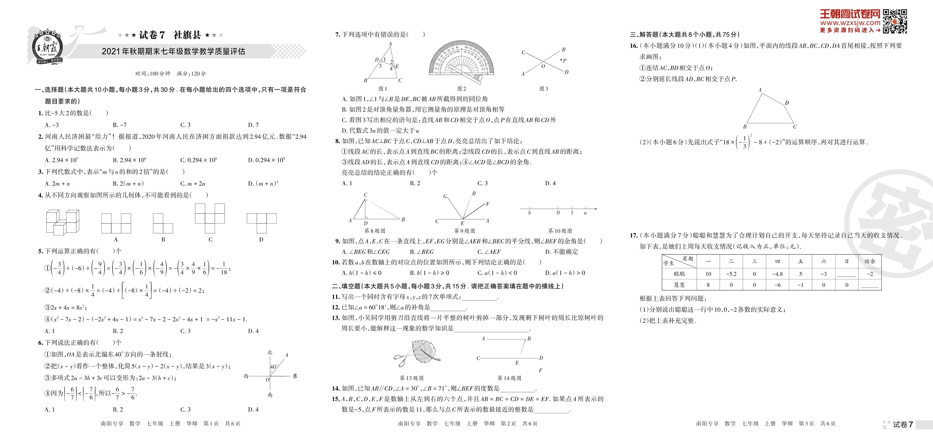 社旗县2021年秋期期末七年级数学教学质量评估(华师版)【7】