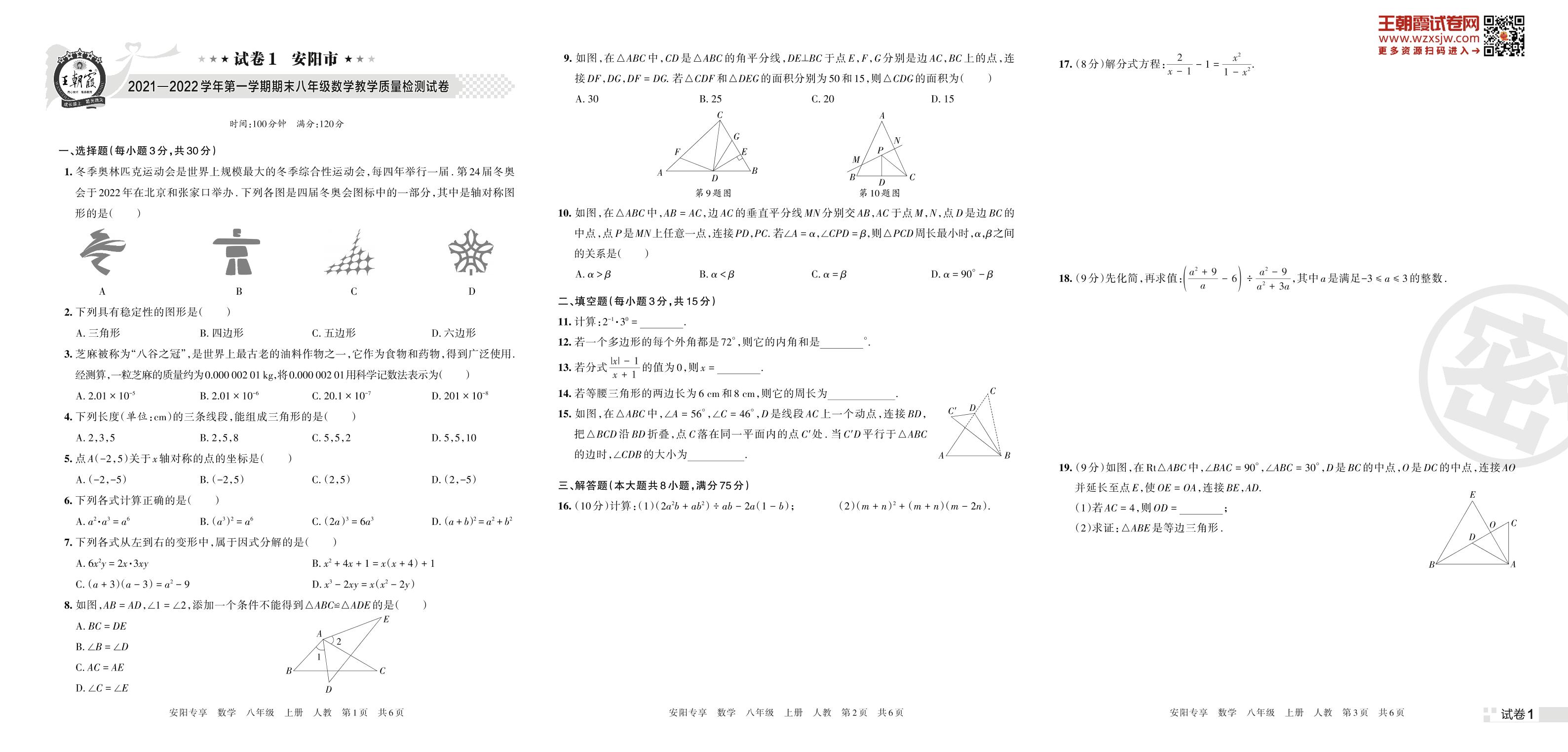 安阳市2021—2022学年第一学期期末八年级数学教学质量检测试卷(人教版)【1】