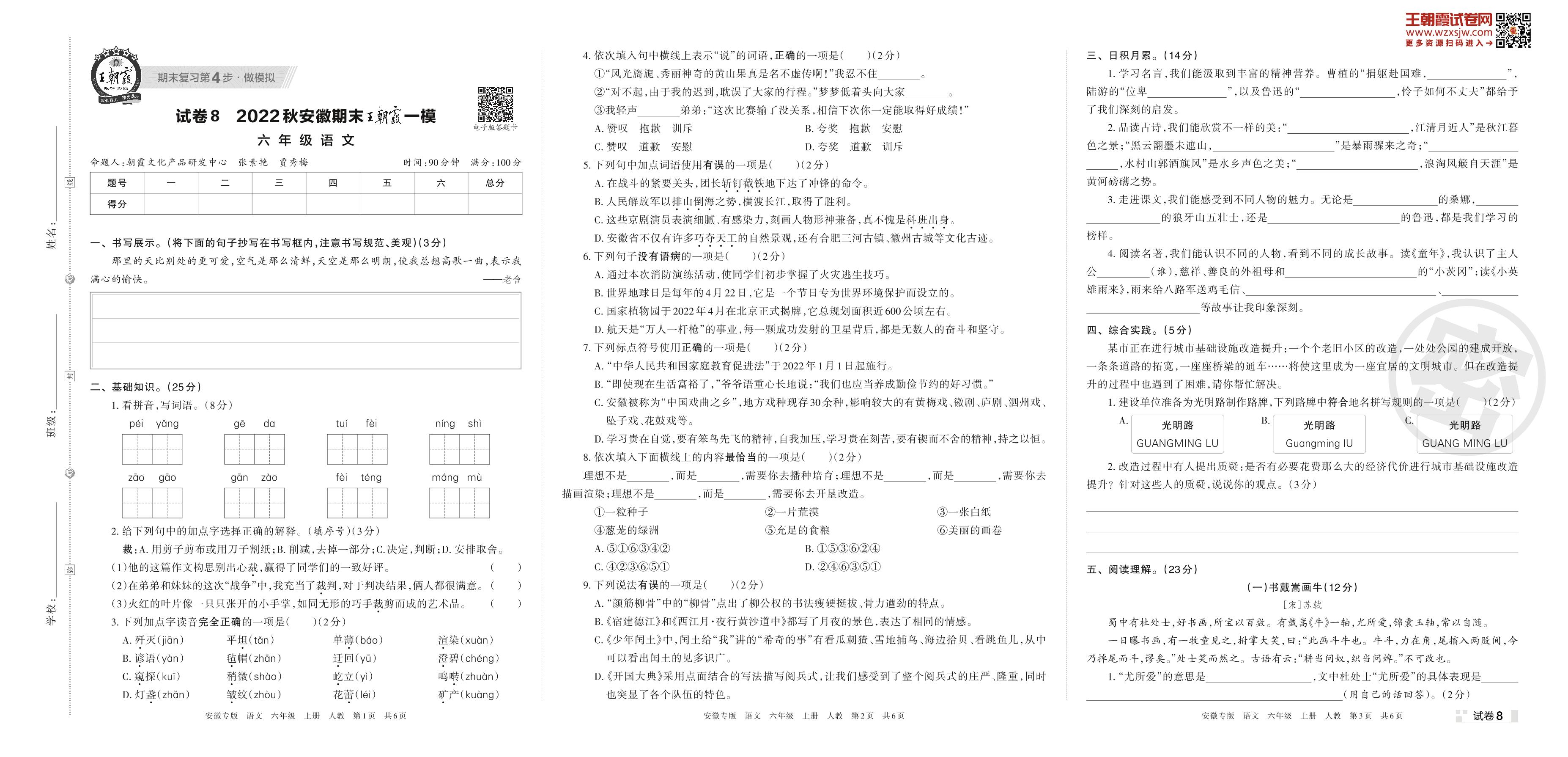 王朝霞期末模拟卷六年级上册语文(人教版)_R221125204428436【8】