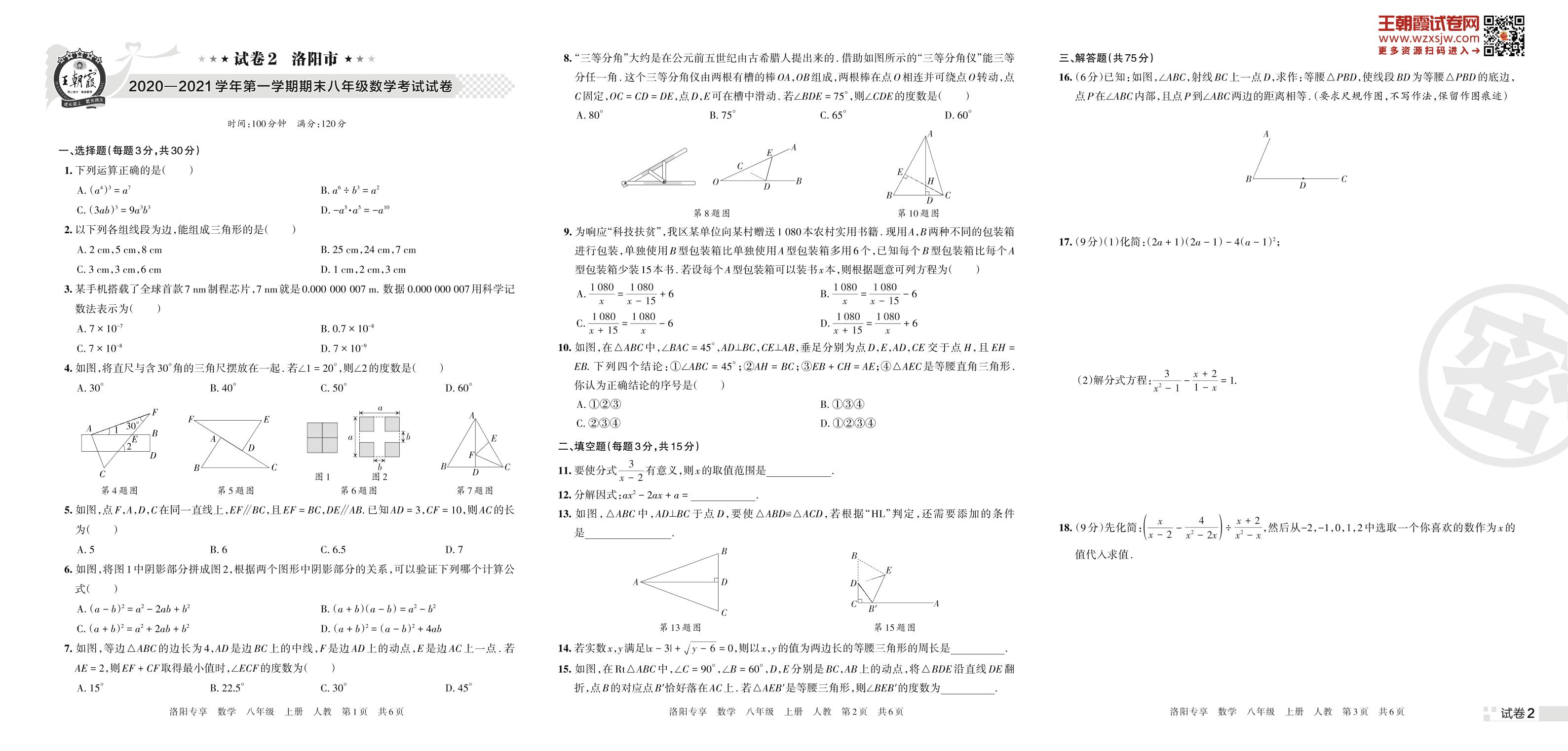 洛阳市2020—2021学年第一学期期末八年级数学考试试卷(人教版)【2】