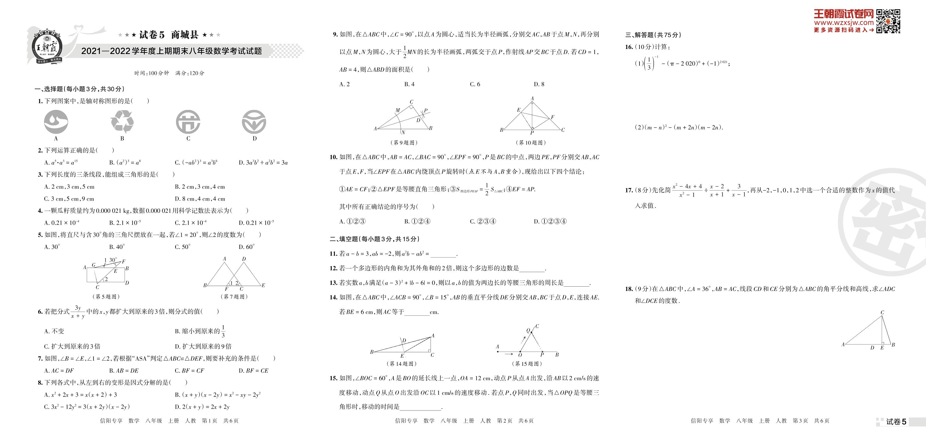 商城县2021—2022学年度上期期末八年级数学考试试题(人教版)【5】