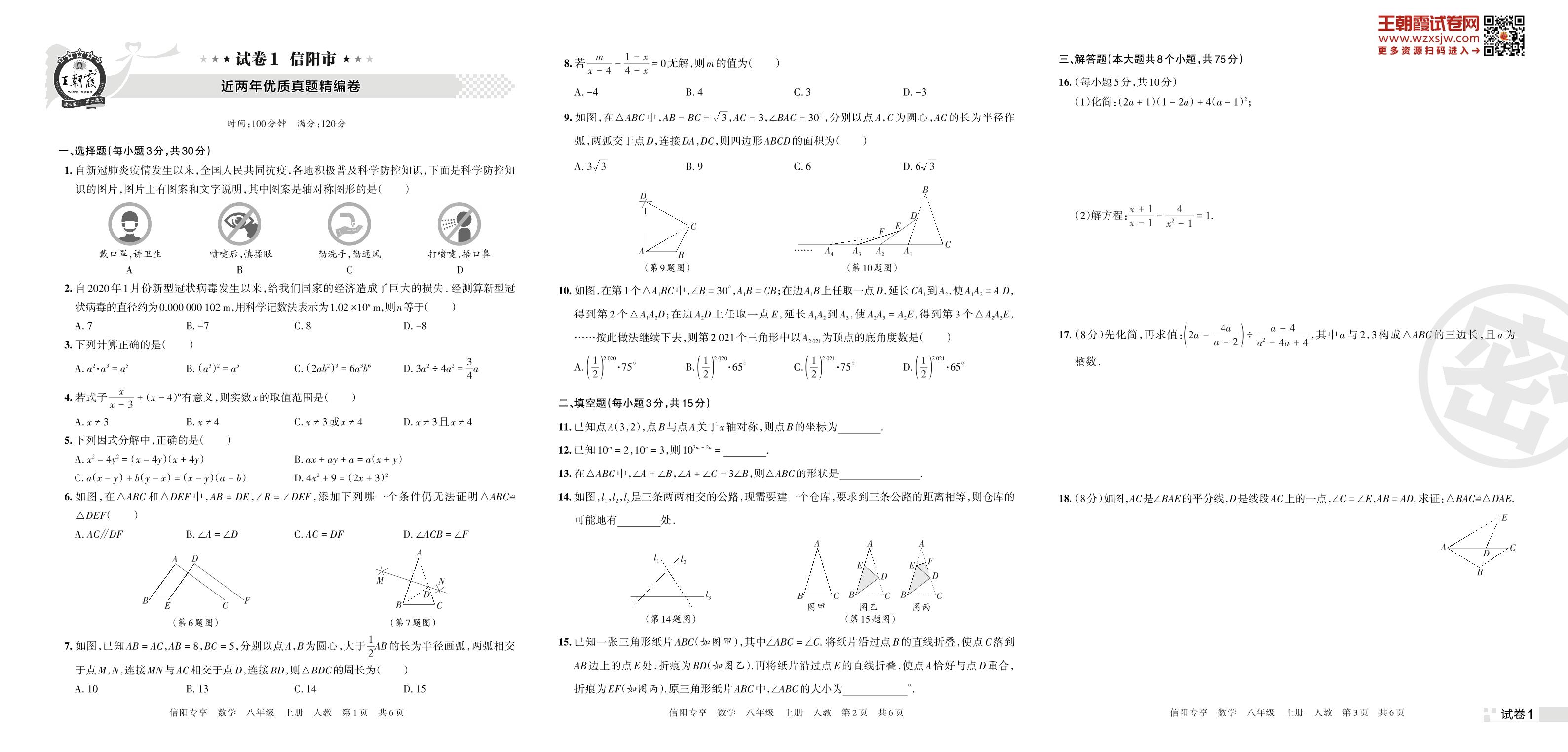 信阳市近两年优质真题精编卷八年级上册数学(人教版)【1】