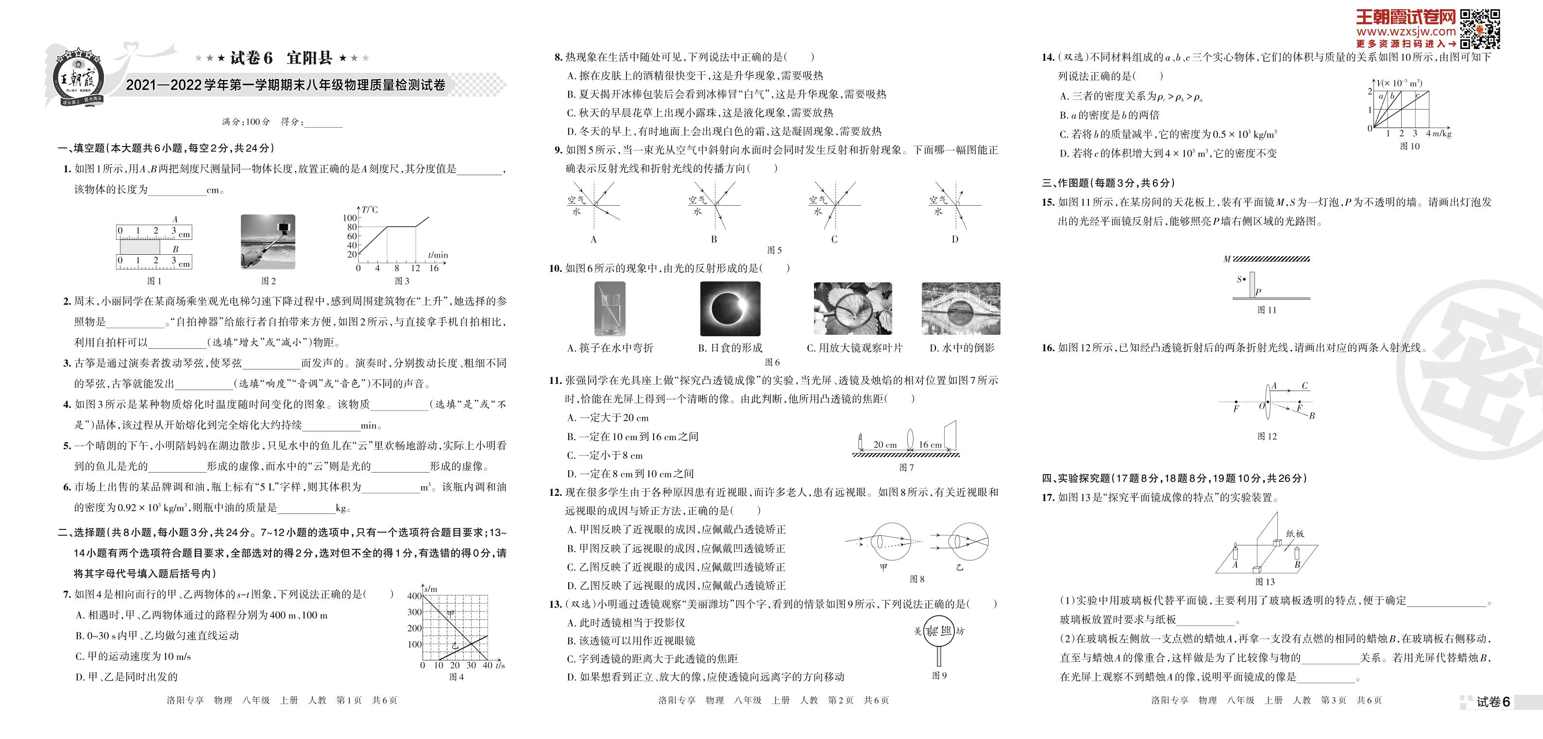 宜阳县2021—2022学年第一学期期末八年级物理质量检测试卷(人教版)【6】