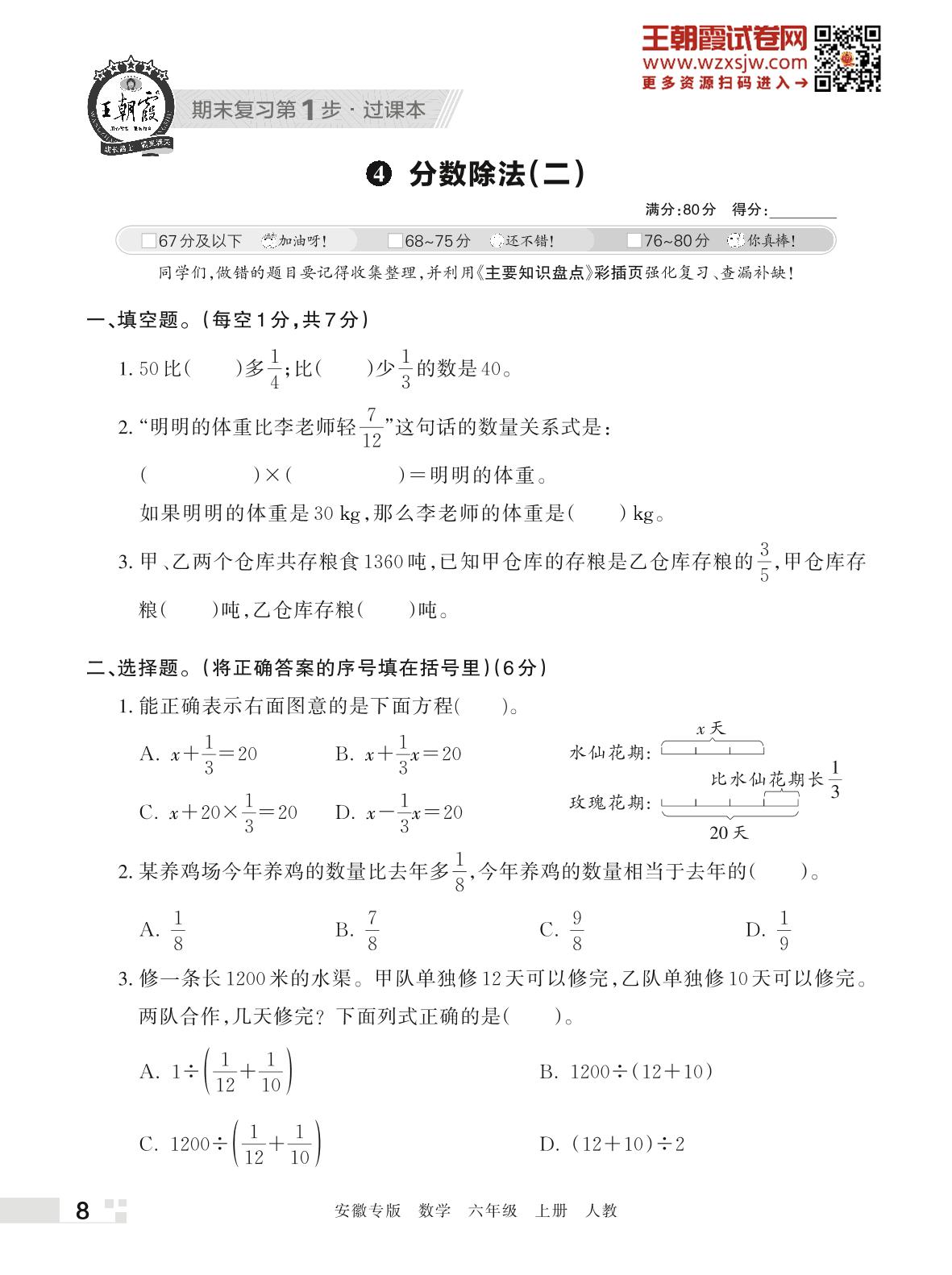 王朝霞期末过课本——4 分数除法(二)六年级上册数学(人教版)_R221125205209561