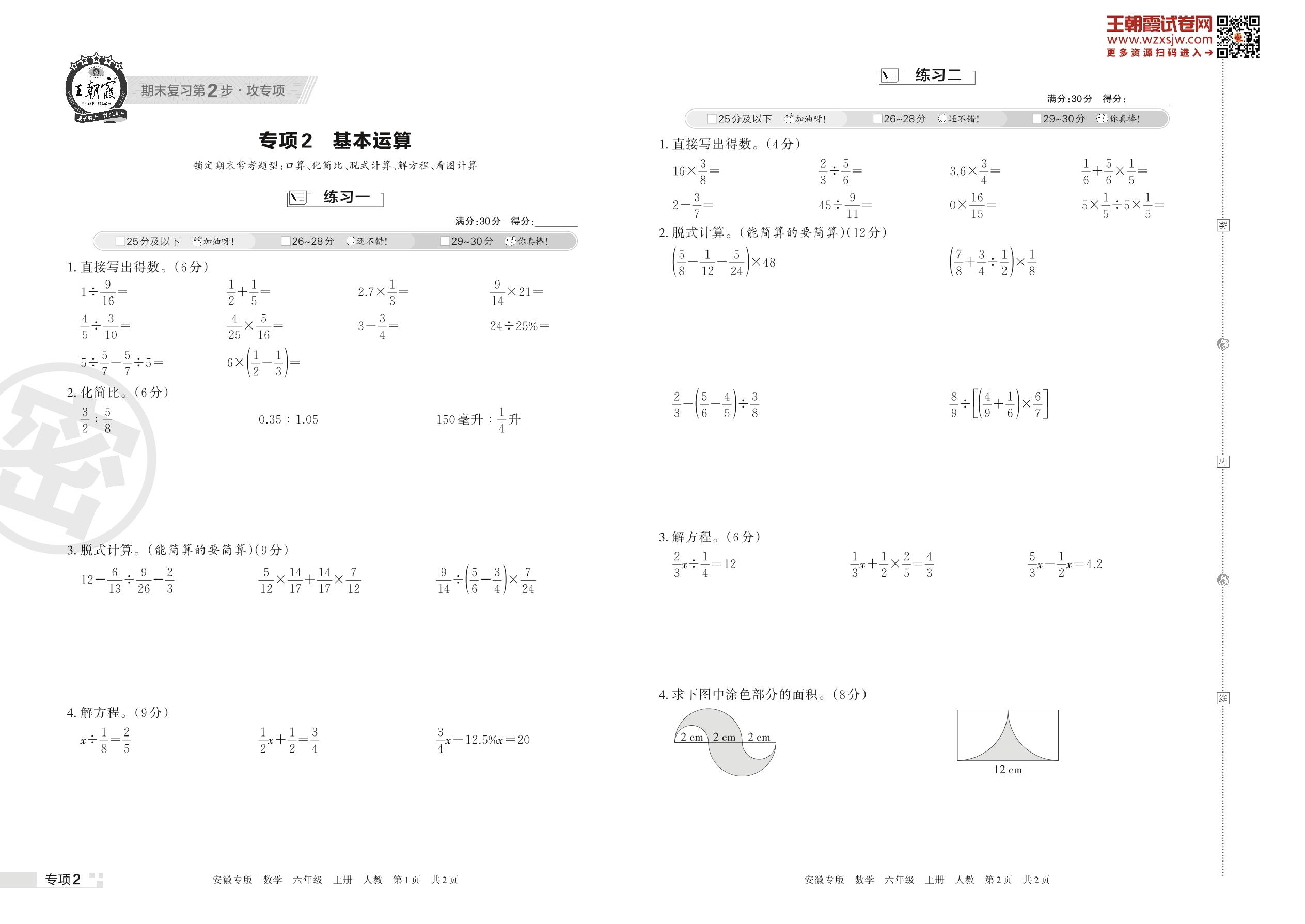 王朝霞期末专项卷——基本运算六年级上册数学(人教版)_R221125205210273【2】