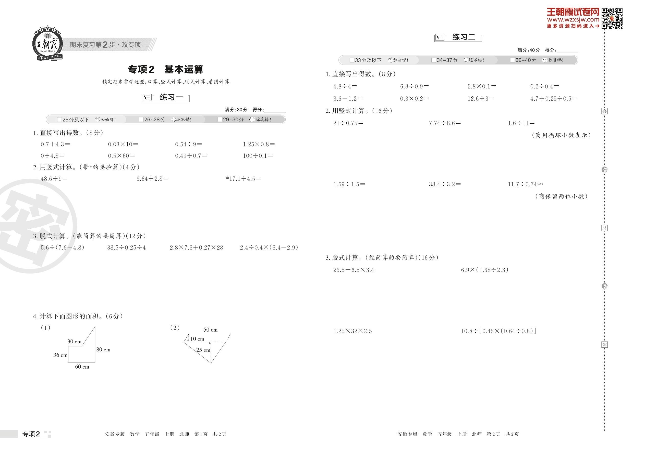 王朝霞期末专项卷——基本运算五年级上册数学(北师版)_R221125205933526【2】