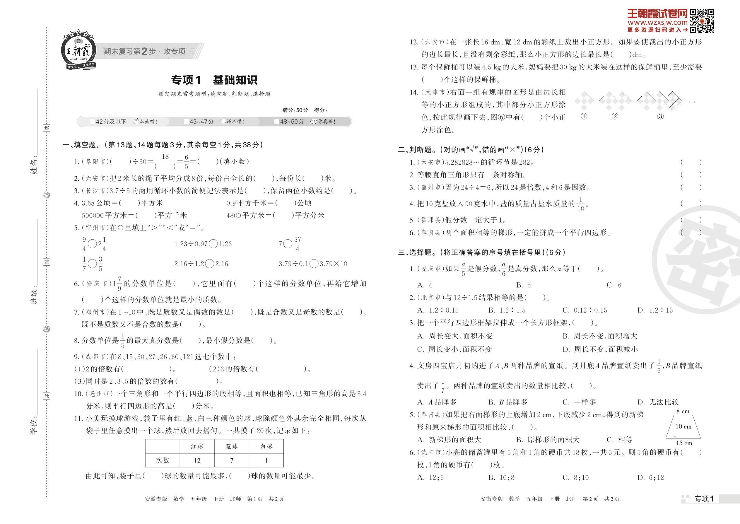 王朝霞期末专项卷——基础知识五年级上册数学(北师版)_R221125205934203【1】