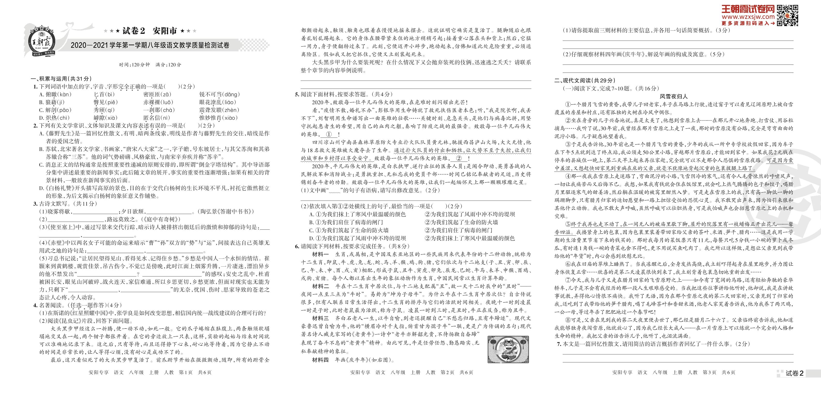 安阳市2020—2021学年第一学期八年级语文教学质量检测试卷(人教版)【2】