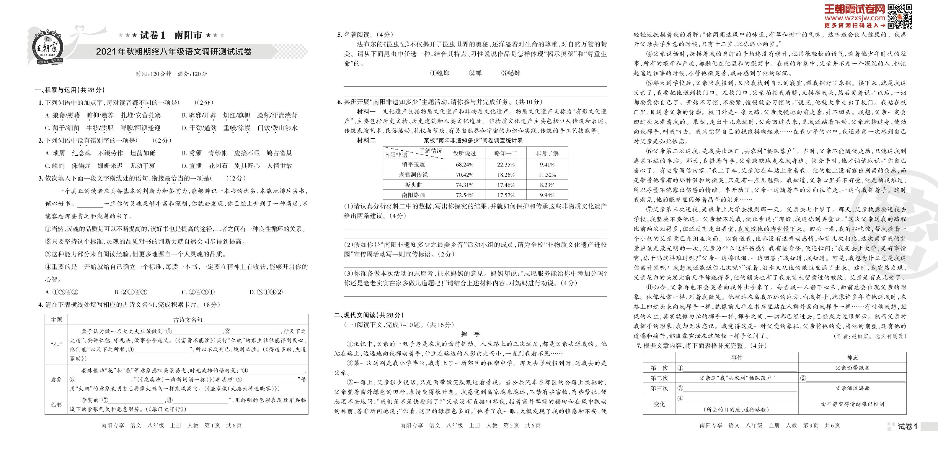 南阳市2021年秋期期终八年级语文调研测试试卷(人教版)【1】
