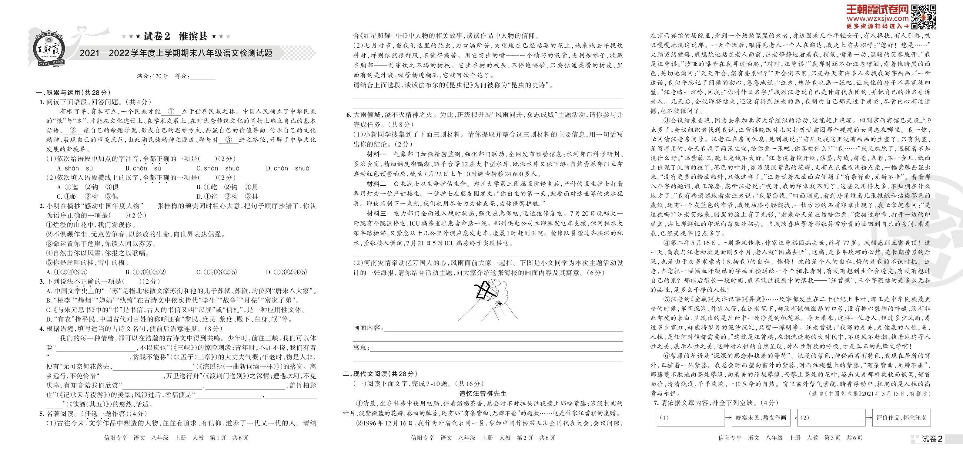 淮滨县2021—2022学年度上学期期末八年级语文检测试题(人教版)【2】