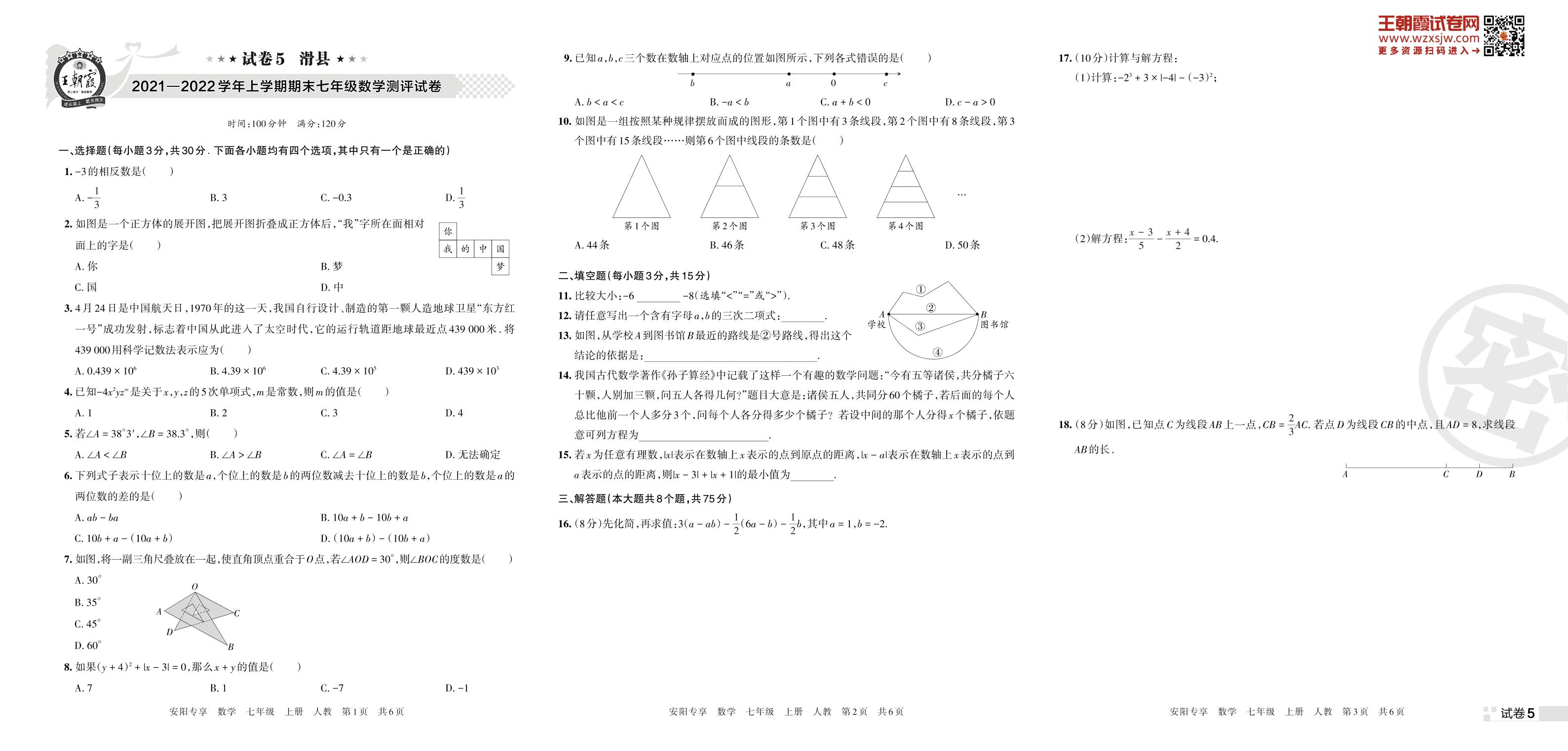 滑县2021—2022学年上学期期末七年级数学测评试卷(人教版)【5】