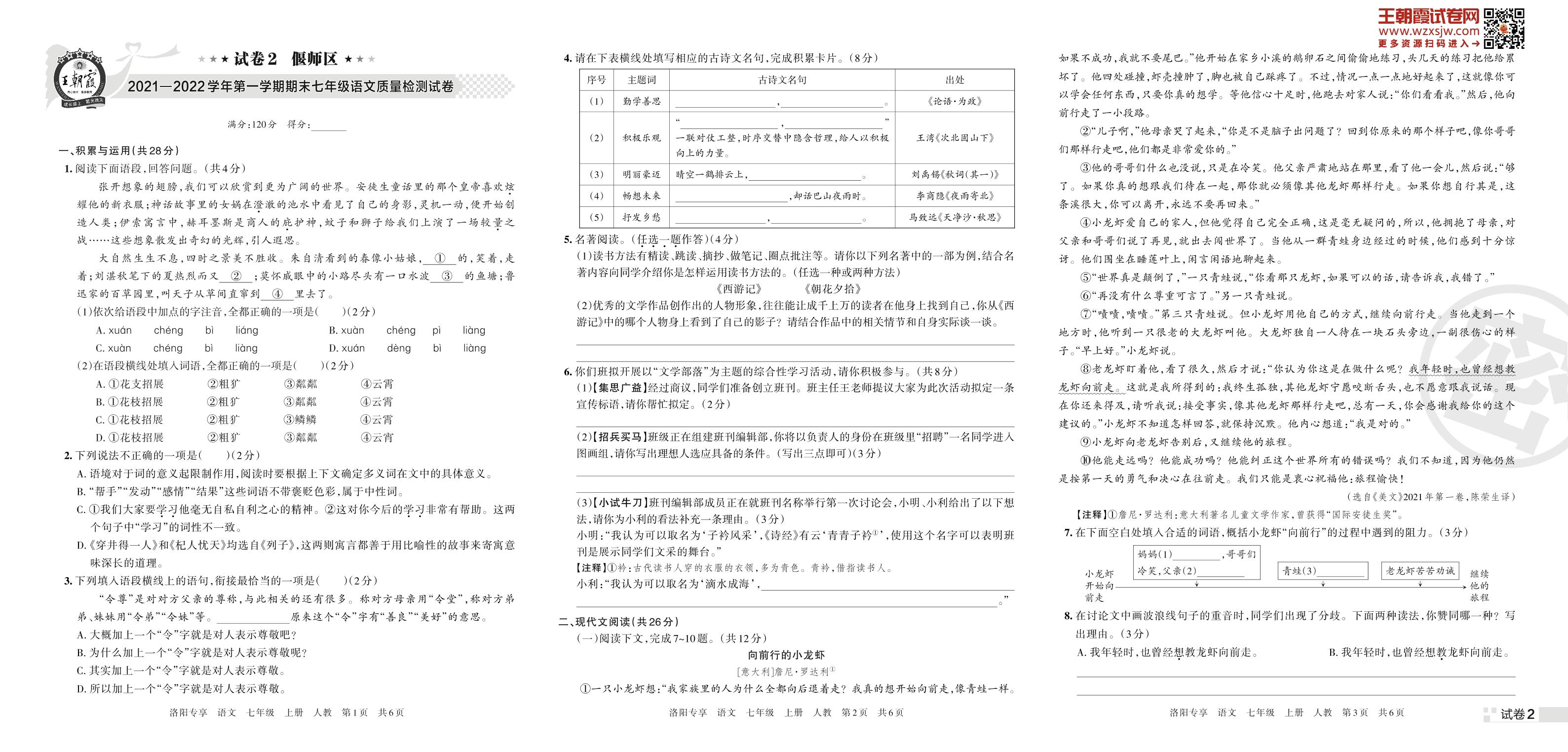 偃师区2021—2022学年第一学期期末七年级语文质量检测试卷(人教版)【2】