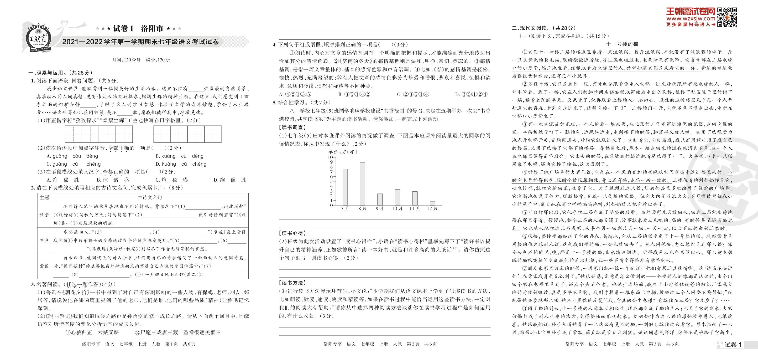 洛阳市2021—2022学年第一学期期末七年级语文考试试卷(人教版)【1】
