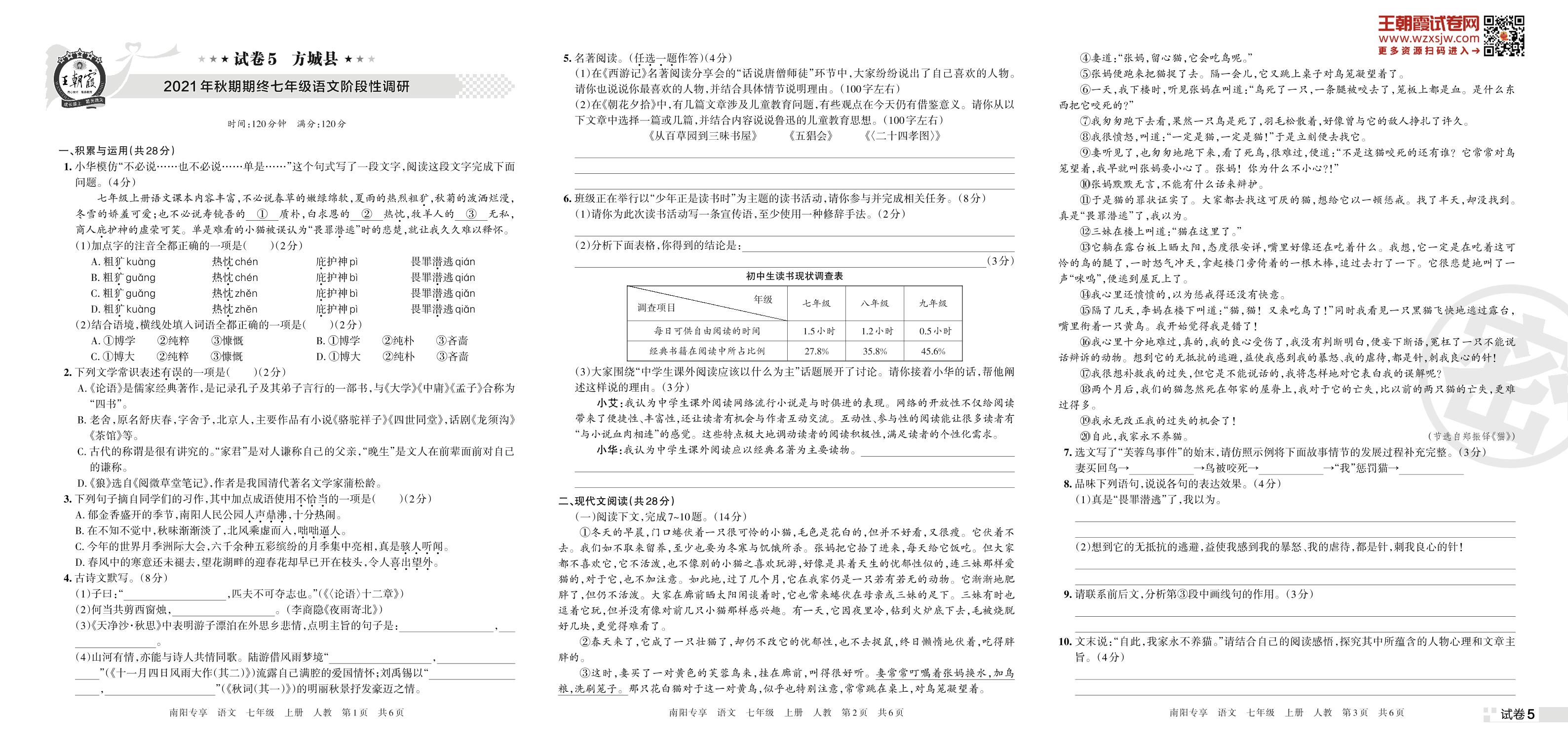 方城县2021年秋期期终七年级语文阶段性调研(人教版)【5】