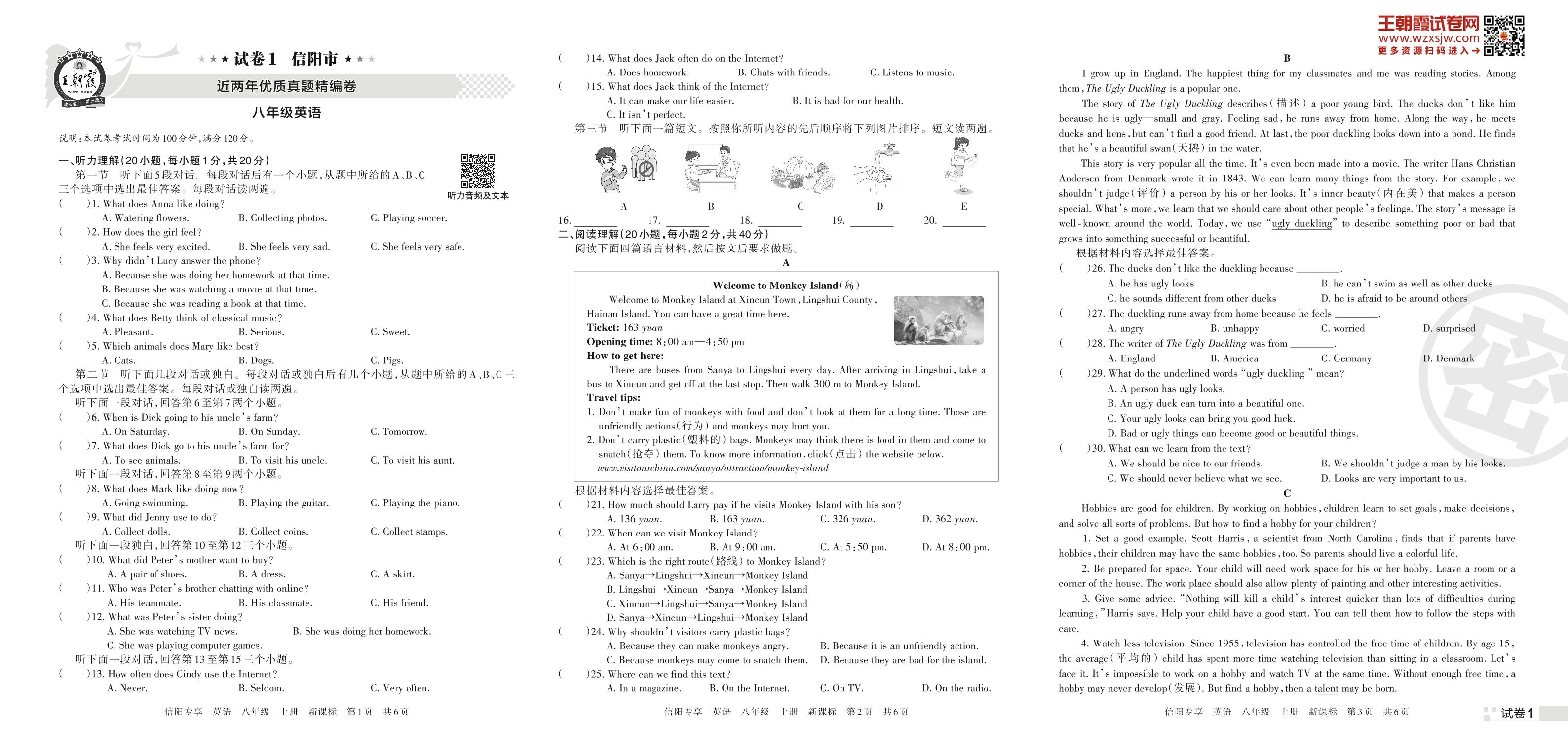 信阳市近两年优质真题精编卷八年级上册英语(新课标版)【1】