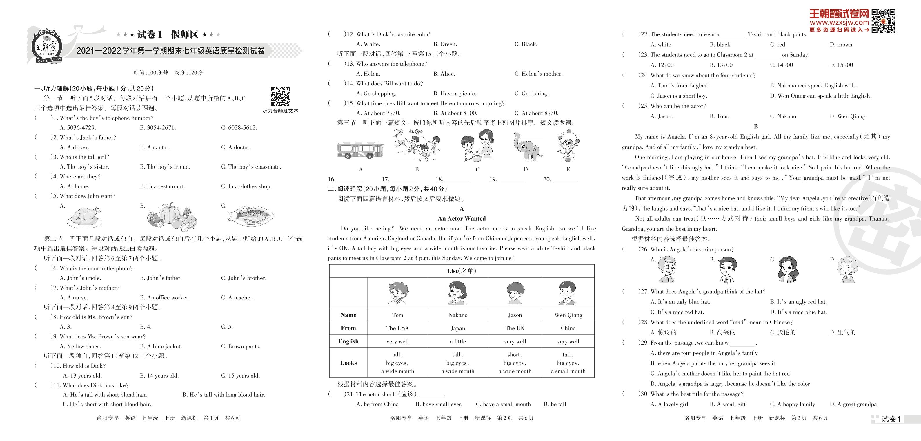 偃师区2021—2022学年第一学期期末七年级英语质量检测试卷(新课标版)【1】