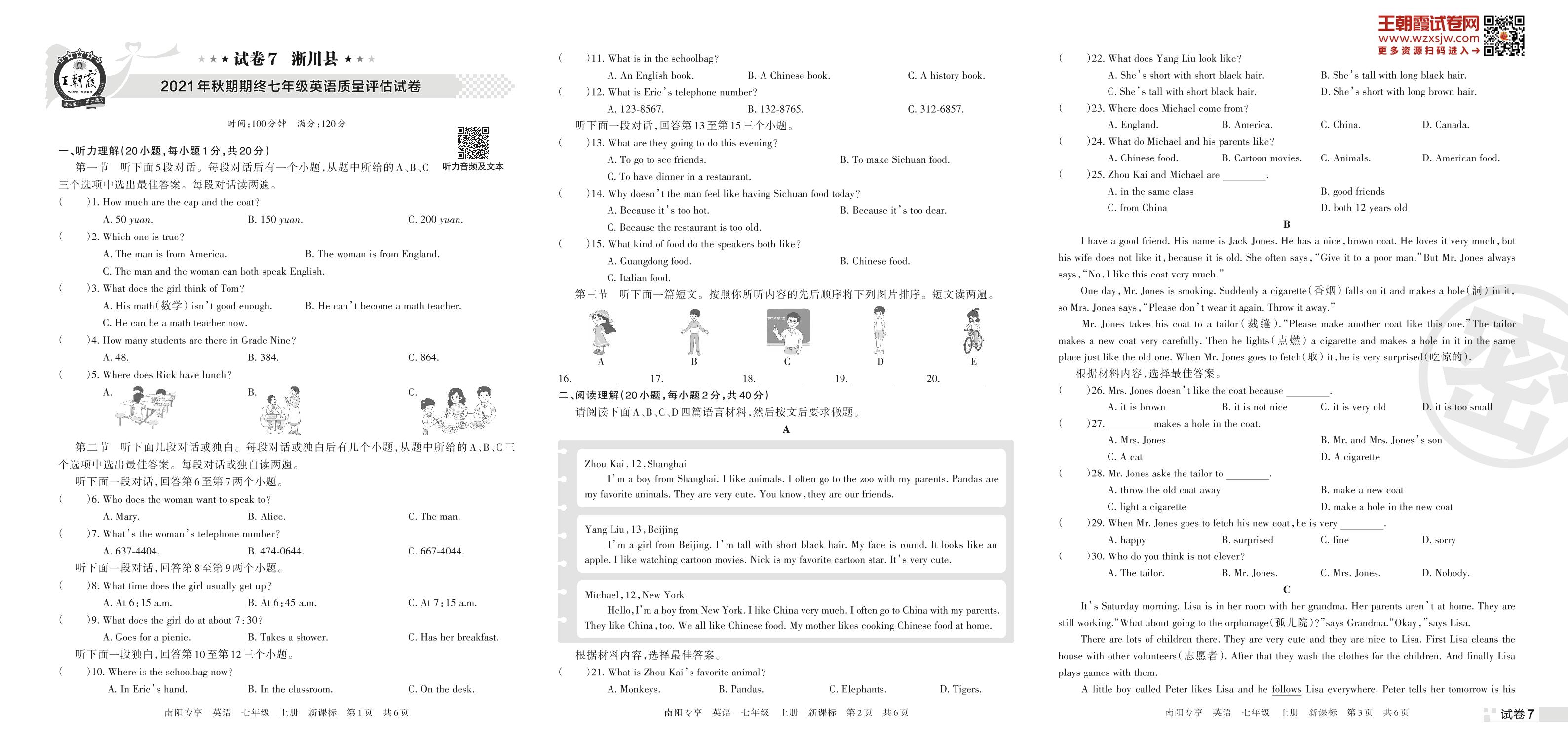 淅川县2021年秋期期终七年级英语质量评估试卷(新课标版)【7】