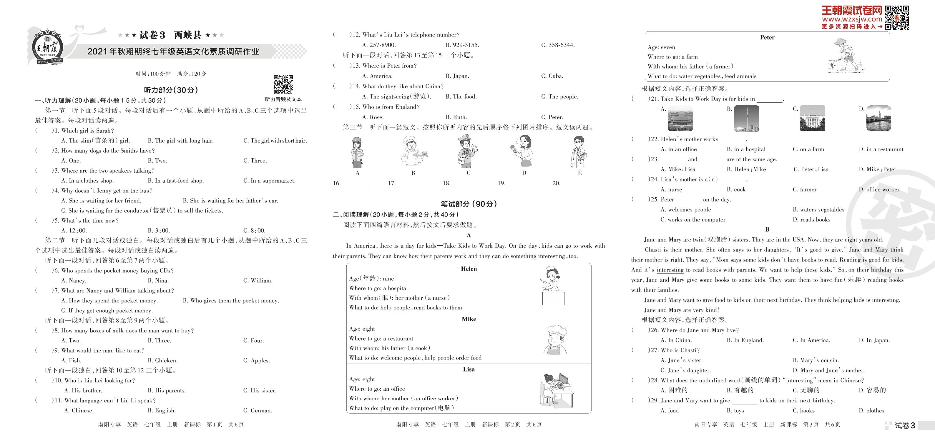 西峡县2021年秋期期终七年级英语文化素质调研作业(新课标版)【3】