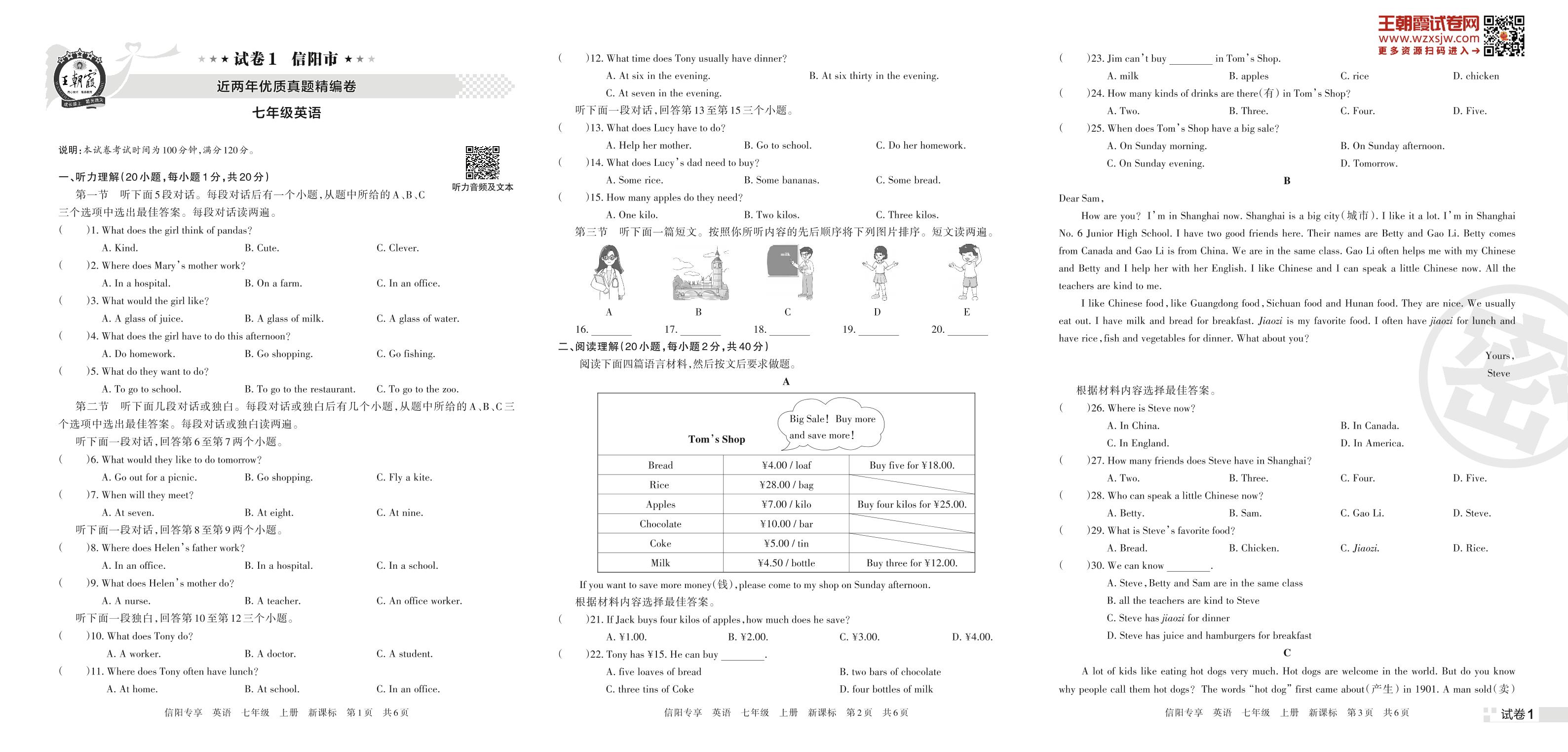 信阳市近两年优质真题精编卷七年级上册英语(新课标版)【1】