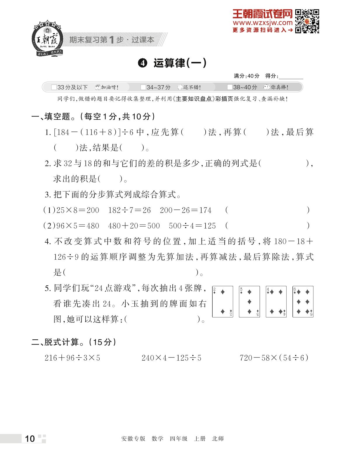 王朝霞期末过课本——4 运算律(一)四年级上册数学(北师版)_R221126112743814