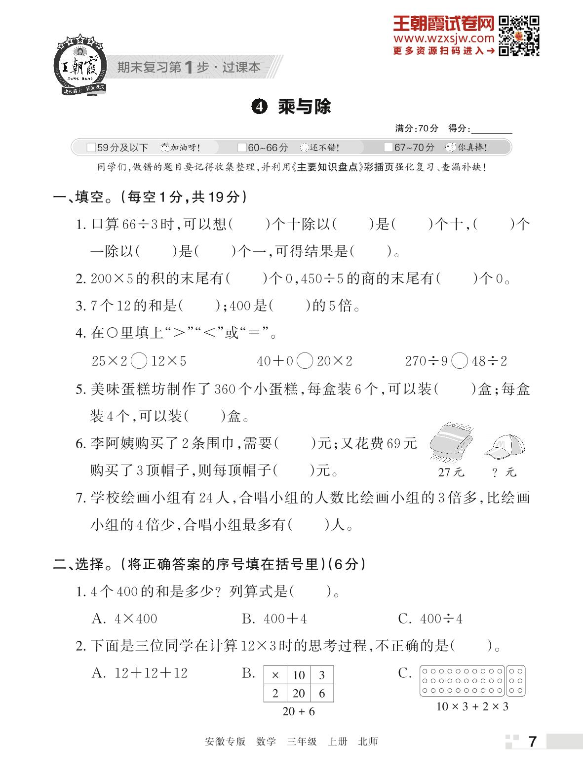 王朝霞期末过课本——4 乘与除三年级上册数学(北师版)_R221126115426086