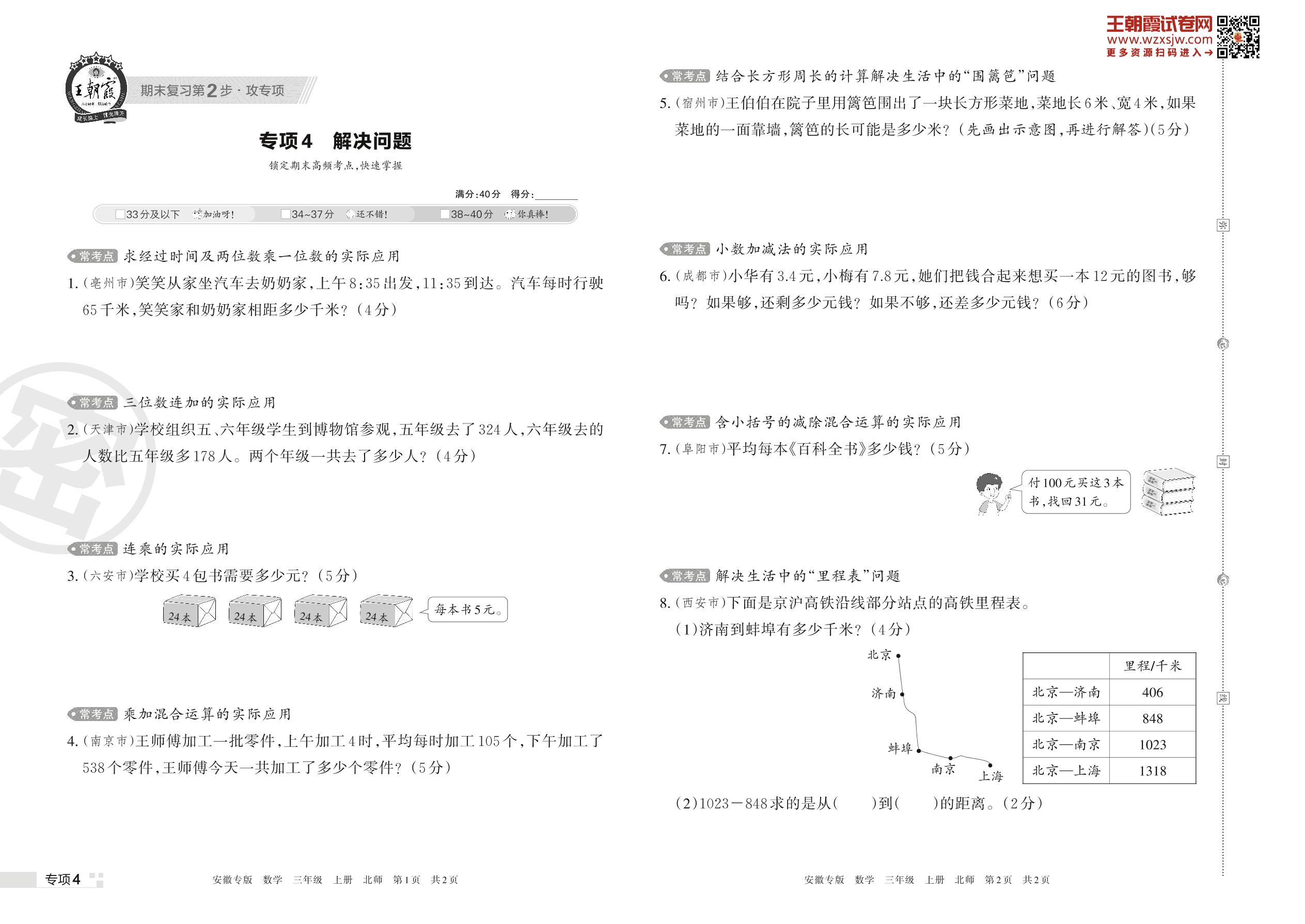 王朝霞期末专项卷——解决问题三年级上册数学(北师版)_R221126115427848【4】
