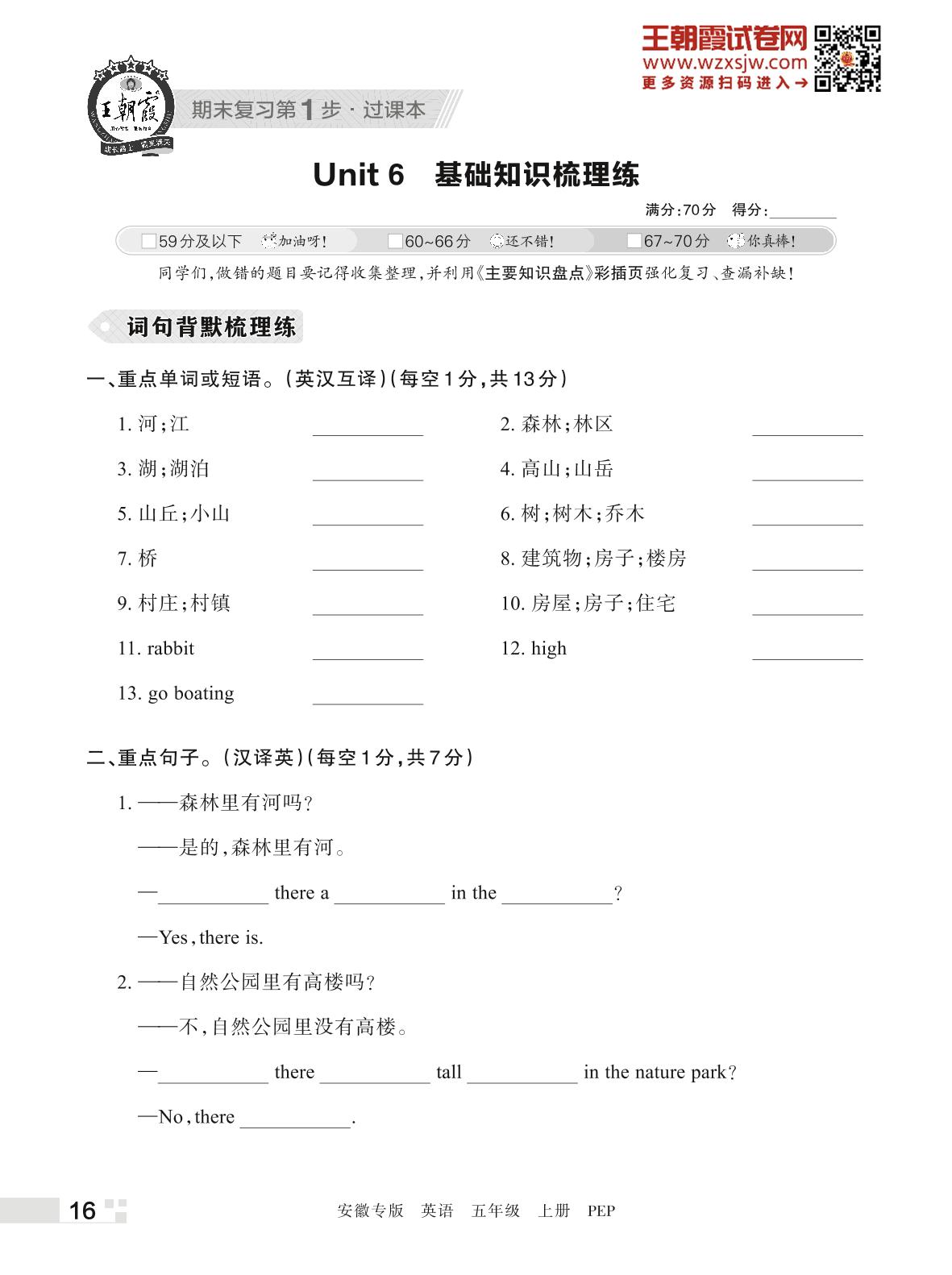 王朝霞期末过课本——Unit 6 基础知识梳理练五年级上册英语(PEP版)_R221126135326978
