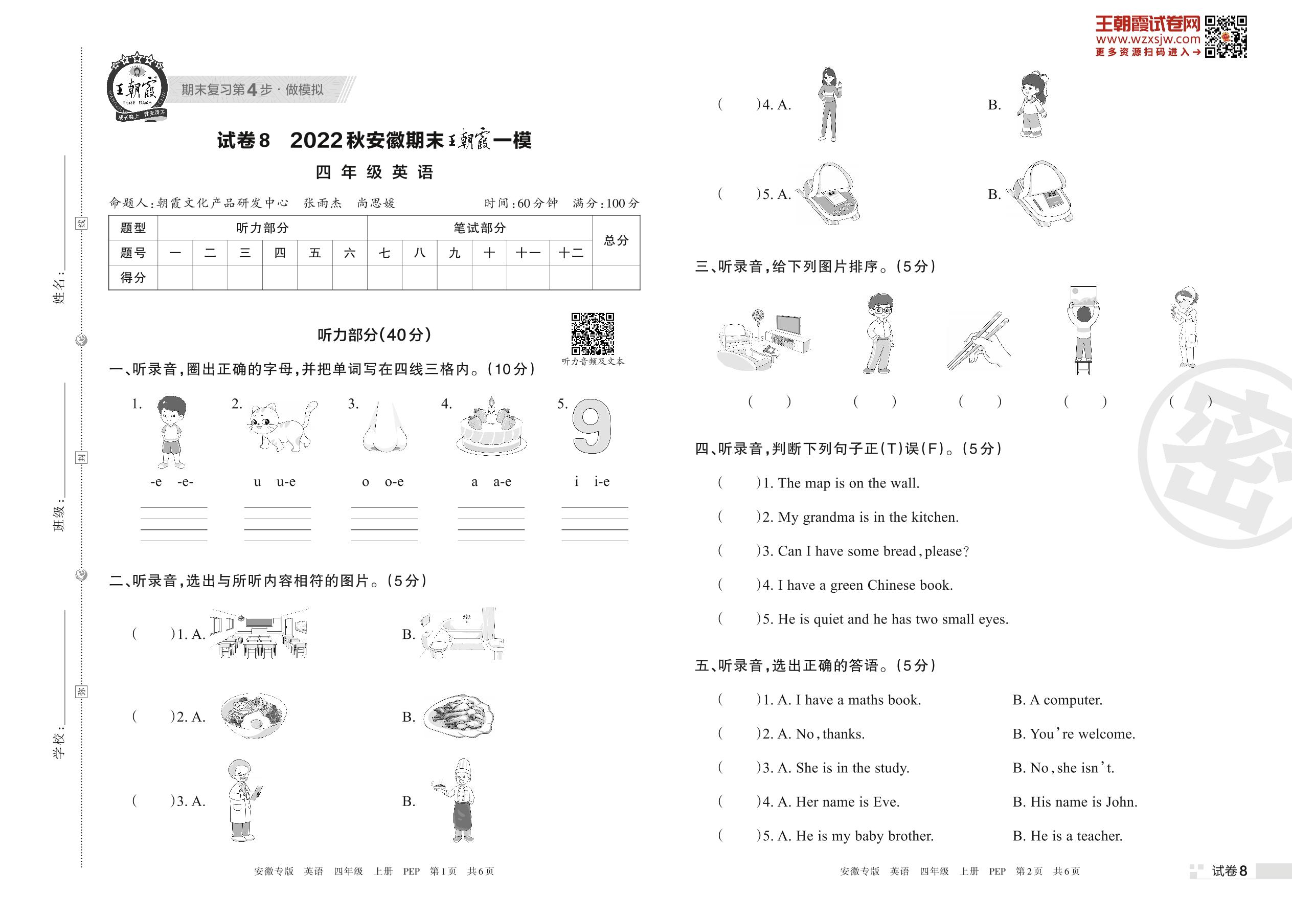 王朝霞期末模拟卷四年级上册英语(PEP版)_R221126140327738【8】