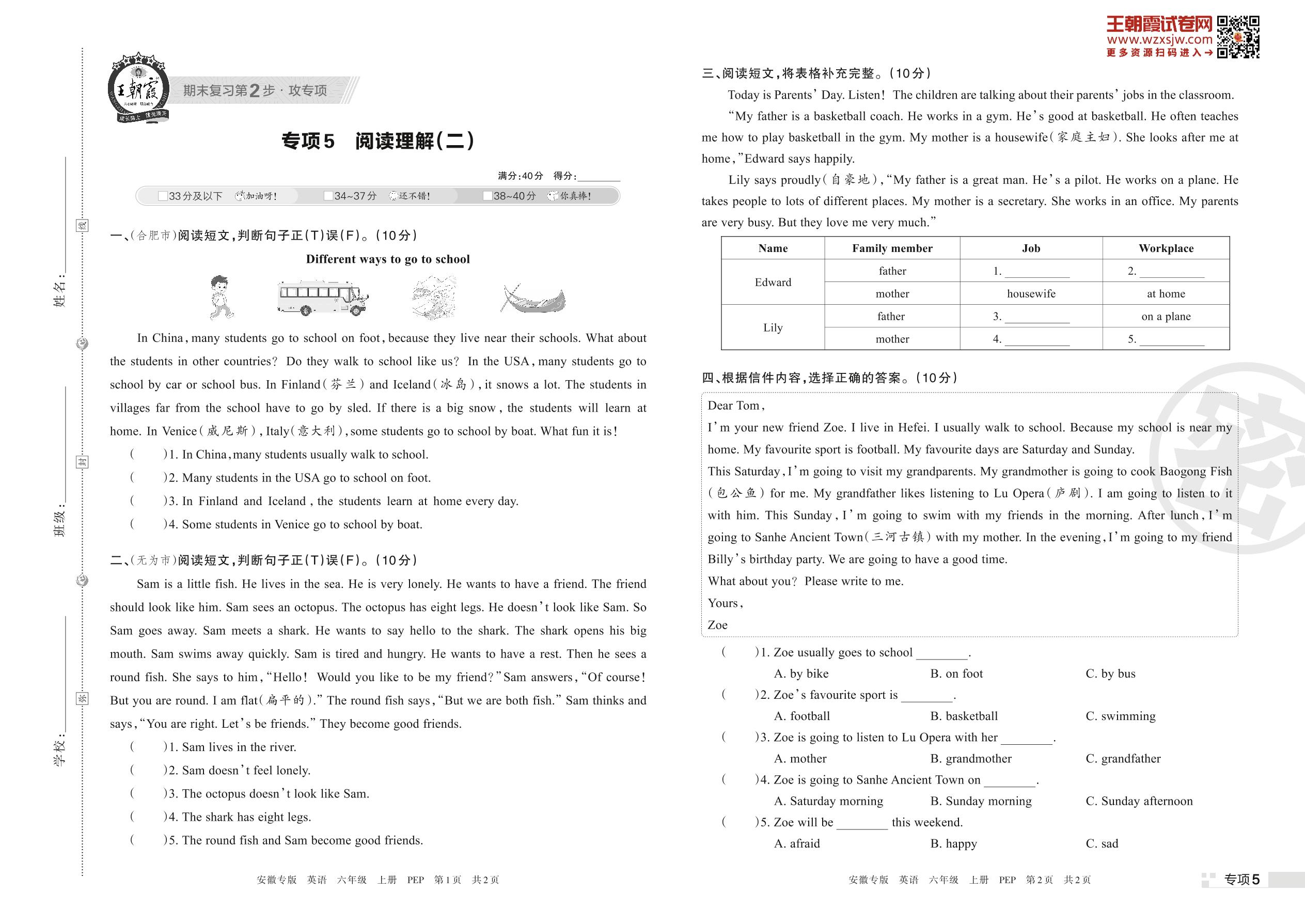 王朝霞期末专项卷——阅读理解(二)六年级上册英语(PEP版)_R221126143024401【5】
