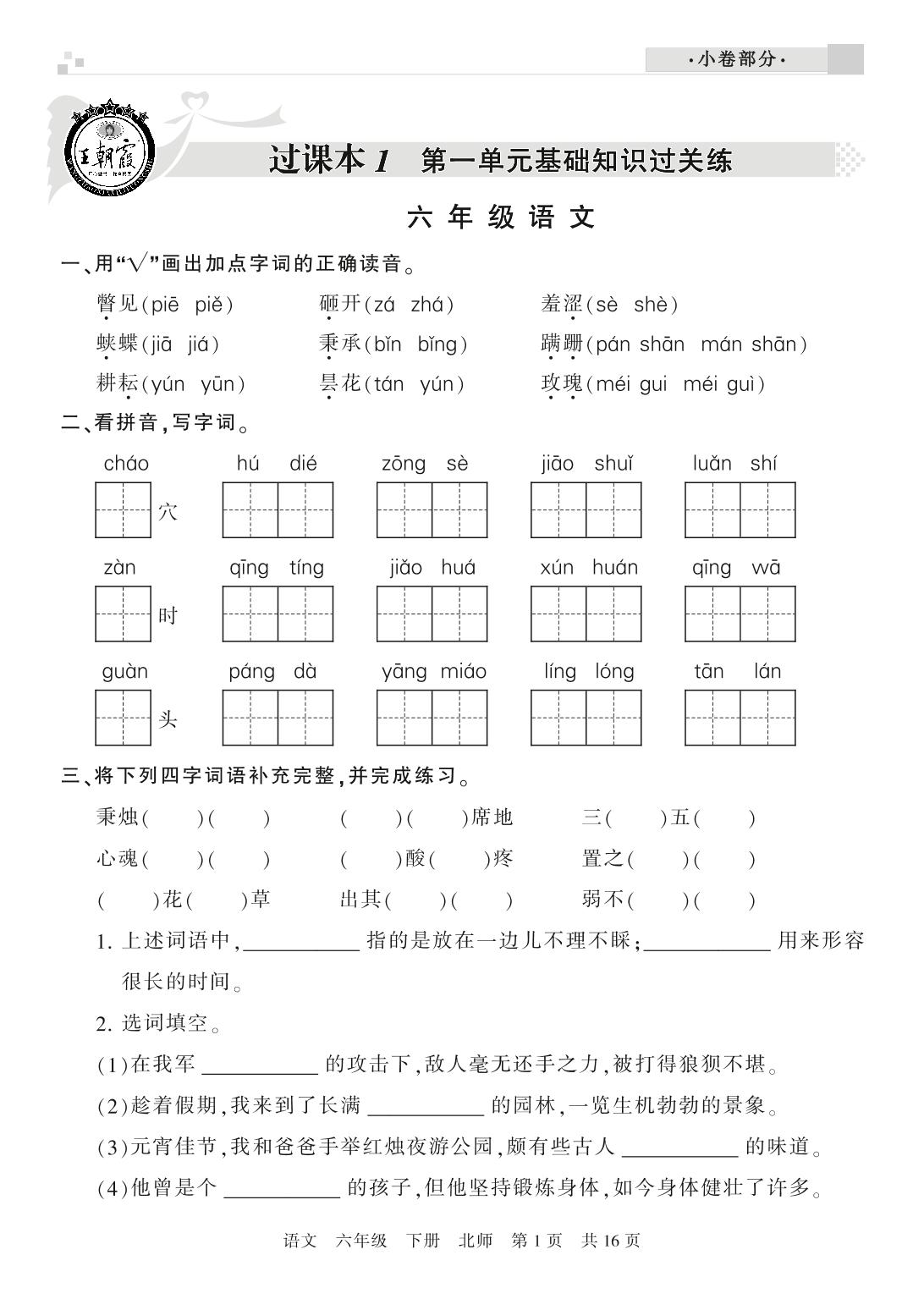 王朝霞期末过课本六年级下册语文(北师版)【0】