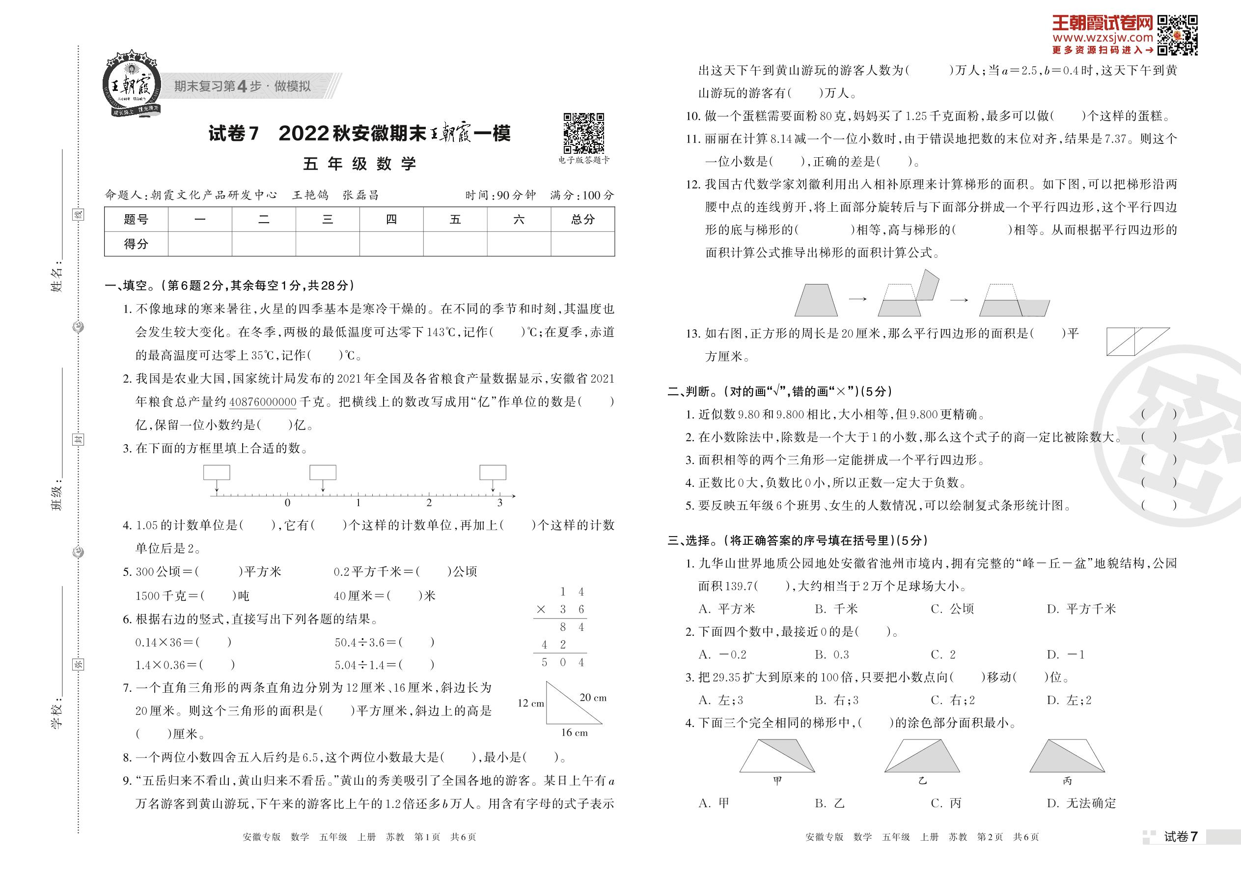 王朝霞期末模拟卷五年级上册数学(人教版)_R221126175320888【7】
