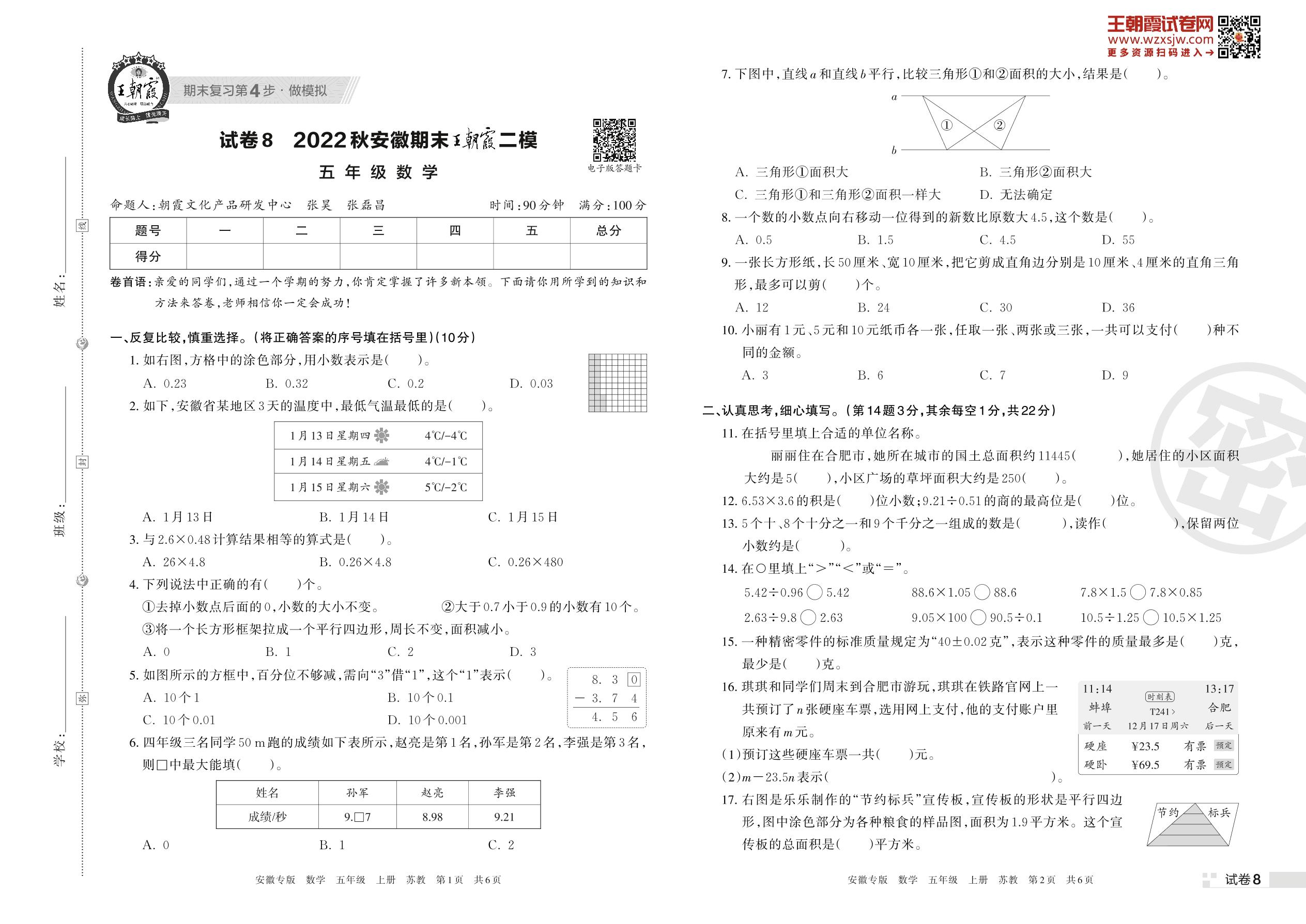 王朝霞期末模拟卷五年级上册数学(人教版)_R221126175320194【8】