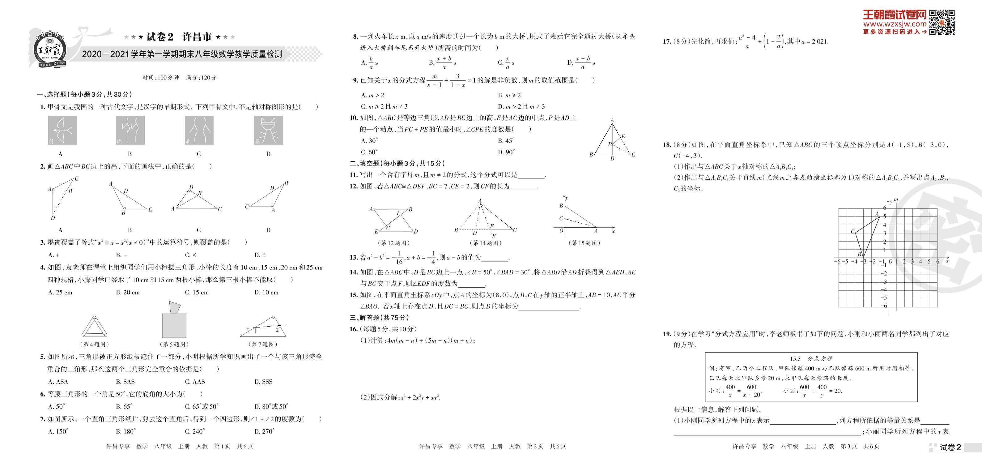 许昌市2020—2021学年第一学期期末八年级数学教学质量检测(人教版)【2】