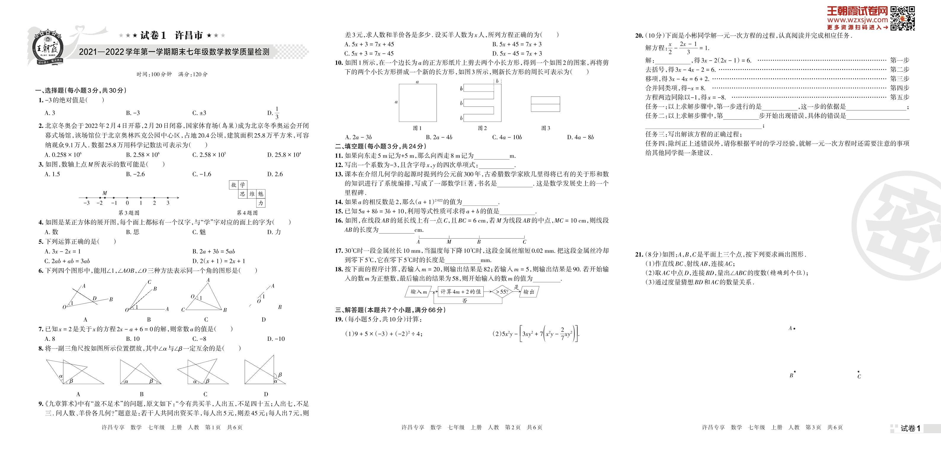 许昌市2021—2022学年第一学期期末七年级数学教学质量检测(人教版)【1】