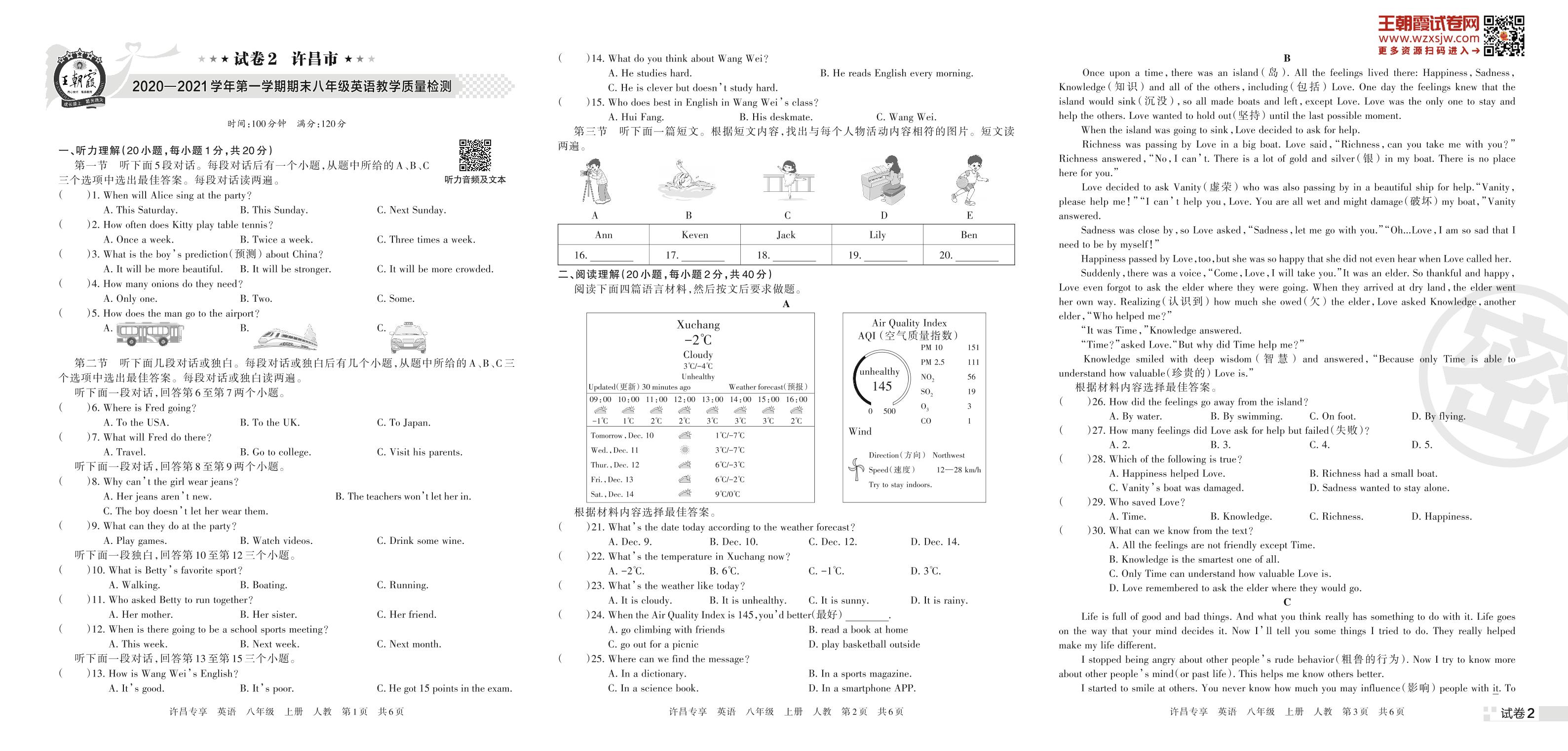 许昌市2020—2021学年第一学期期末八年级英语教学质量检测(人教版)【2】