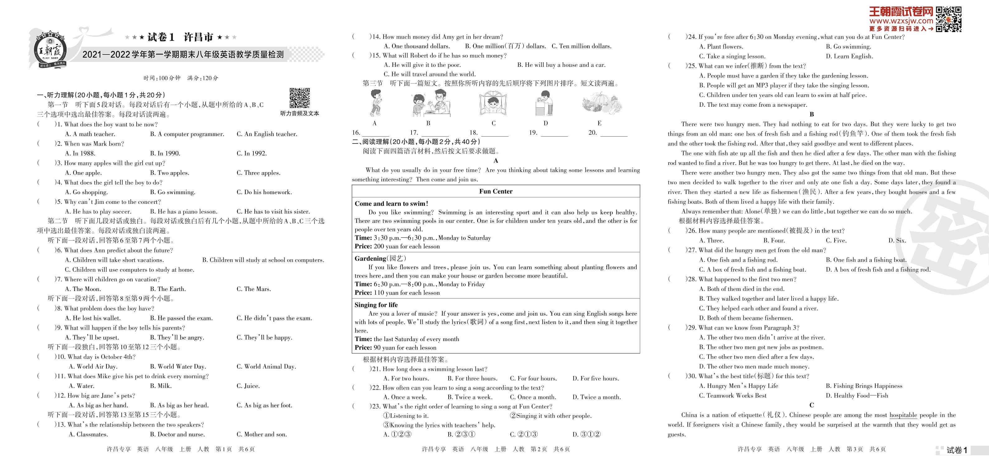 许昌市2021—2022学年第一学期期末八年级英语教学质量检测(人教版)【1】