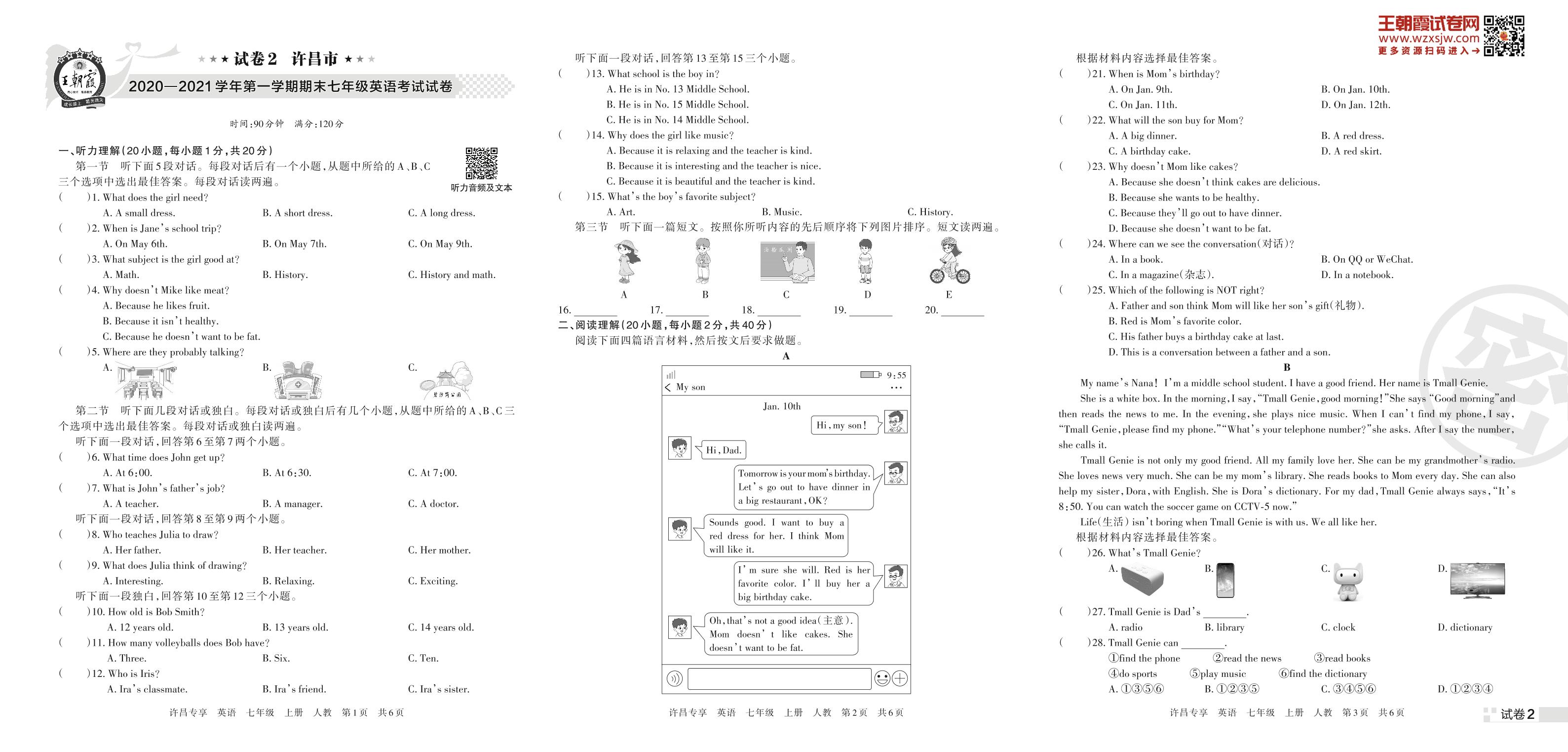 许昌市2020—2021学年第一学期期末七年级英语考试试卷(人教版)【2】