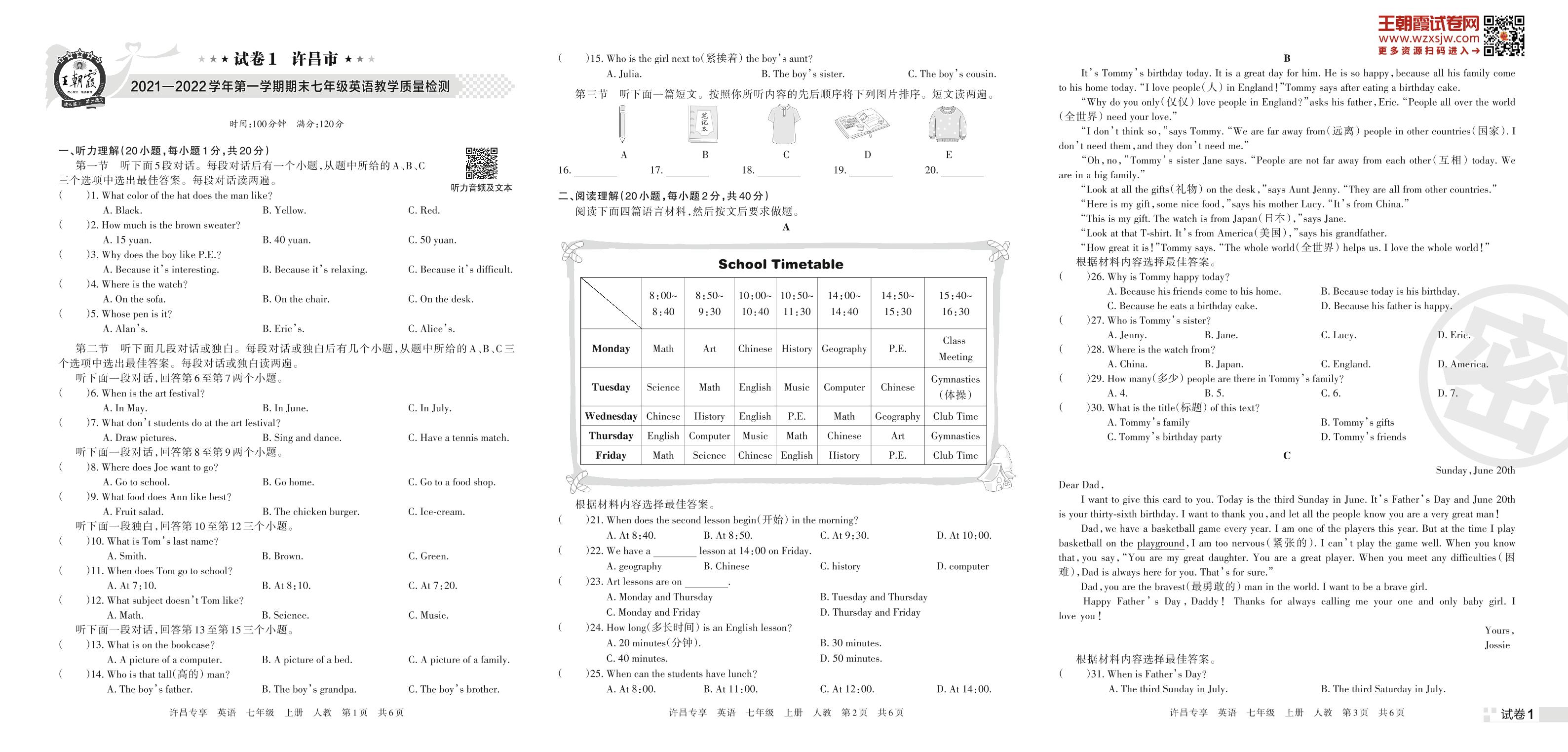 许昌市2021—2022学年第一学期期末七年级英语教学质量检测(人教版)【1】