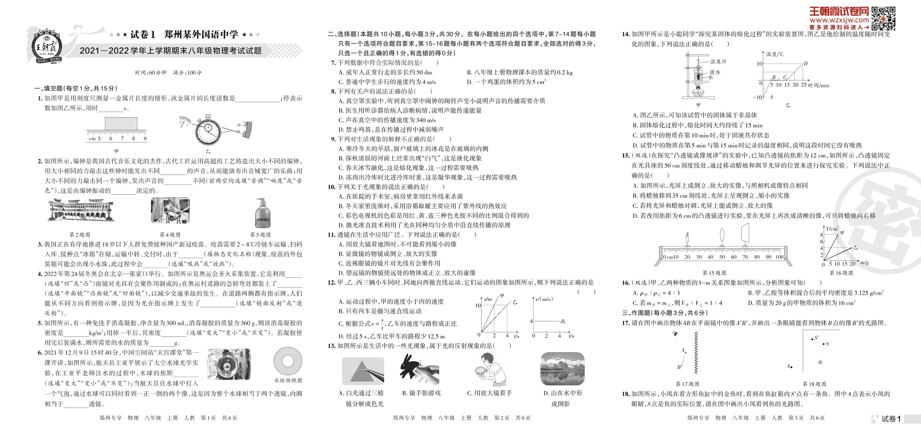 郑州某外国语中学2021—2022学年上学期期末八年级物理考试试题(人教版)【1】